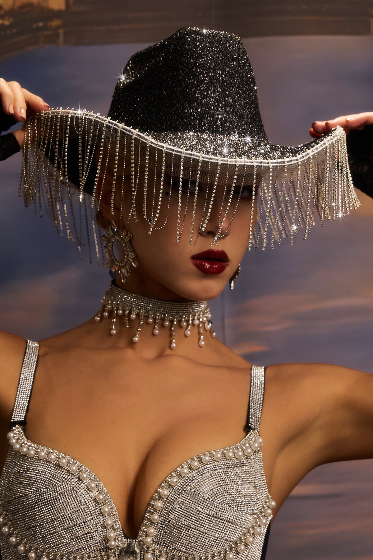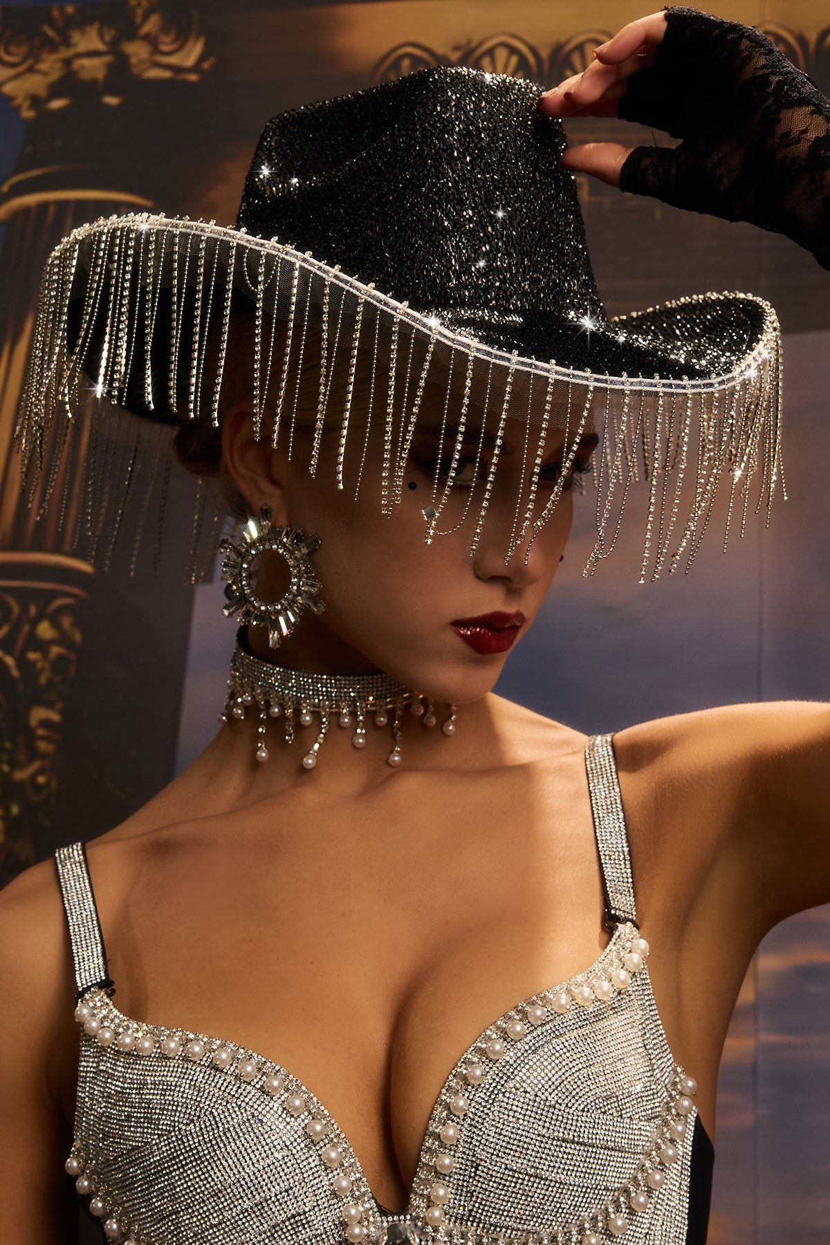 Kassidy Crystal Fringe Glitter Hat Black