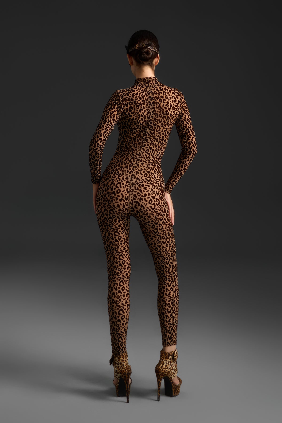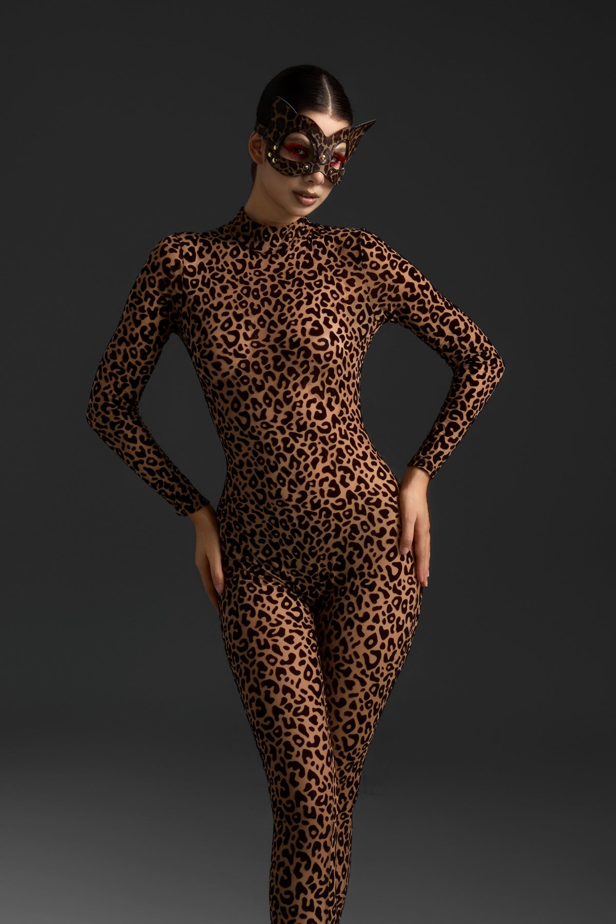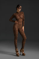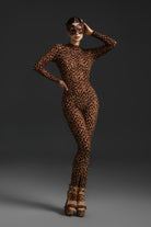 The Maiken Long Sleeve Leopard Printed Jumpsuit merges untamed energy with sophisticated design. Featuring a bold leopard print that commands attention, this jumpsuit combines sleek, form-fitting construction with the fierce allure of animal print. The long sleeve silhouette adds a touch of elegance, while the overall design offers both movement and strength. Perfect for performances, fashion-forward styling, or high-impact occasions, this jumpsuit embodies modern wildness with refined confidence.