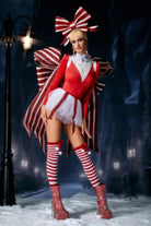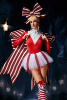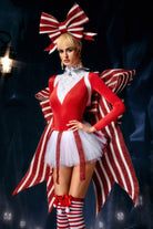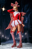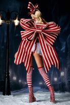 Five-Piece Performance Outfit: Includes long-sleeve costume, headpiece, choker, oversized bow backpiece, and socks