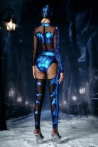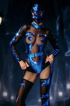Fanni Reflective Cobalt Stage Outfit-Vibrant Shine in Sculpted Performance Design