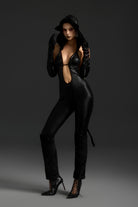 The Jonathan Dark Edge Leather Outfit embodies power and refined intensity with its sleek, full-body design. Featuring a form-fitting leather jumpsuit paired with a matching headpiece and foot covers, this striking ensemble creates a unified and commanding silhouette. Every detail is tuned for strength and presence, offering a bold aesthetic ideal for stage performances or avant-garde styling. Strong, fluid, and unapologetically sharp—this outfit captures the essence of modern dominance and control.