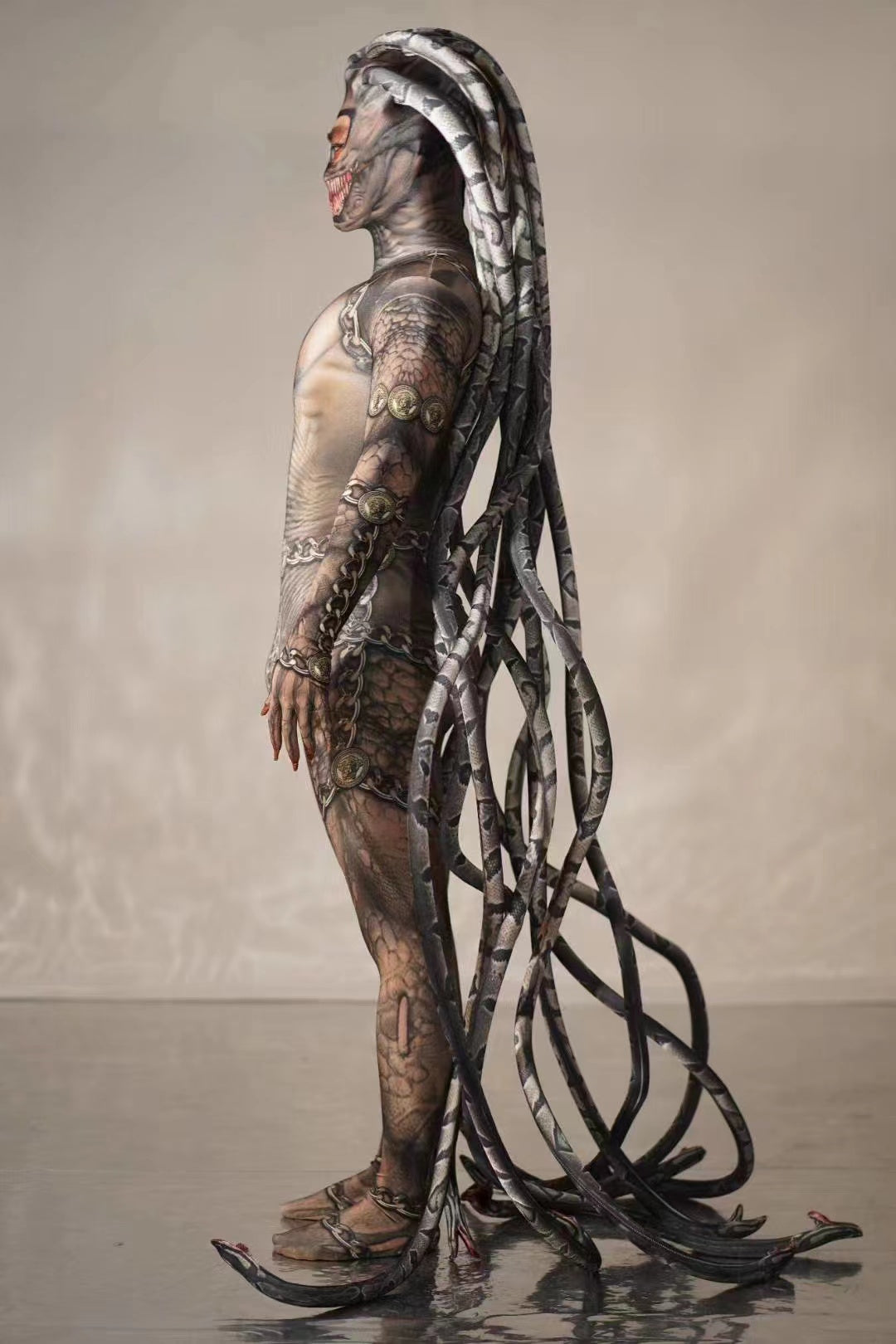 - Full body design including head and limbs snake tentacles, complete shape