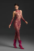 Nanna Long Sleeve Mesh Rhinestone Jumpsuit-Refined Brilliance in Motion
