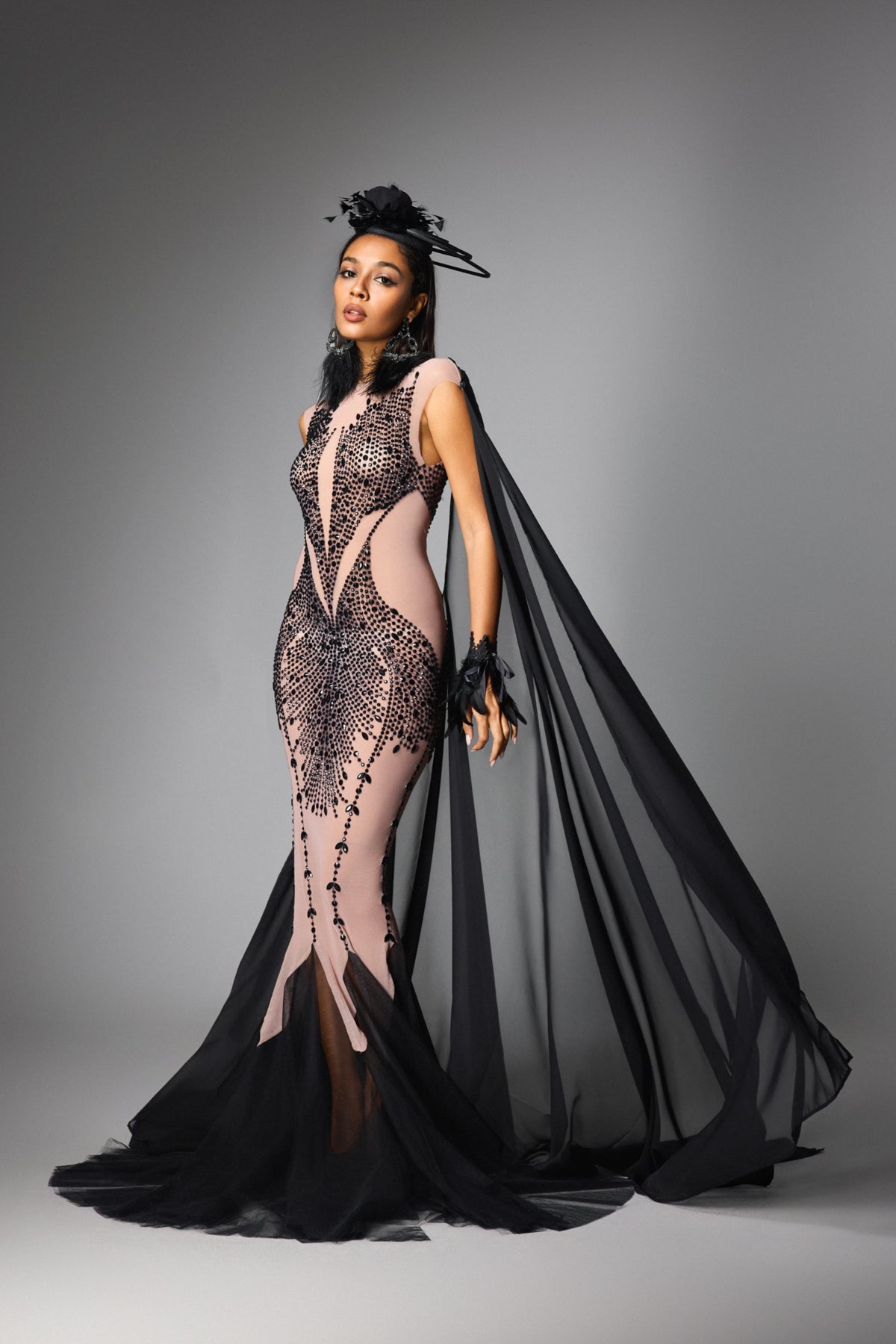 - Slim sleeveless tailoring: outlines elegant shoulder and neck lines, showing a perfect figure.
