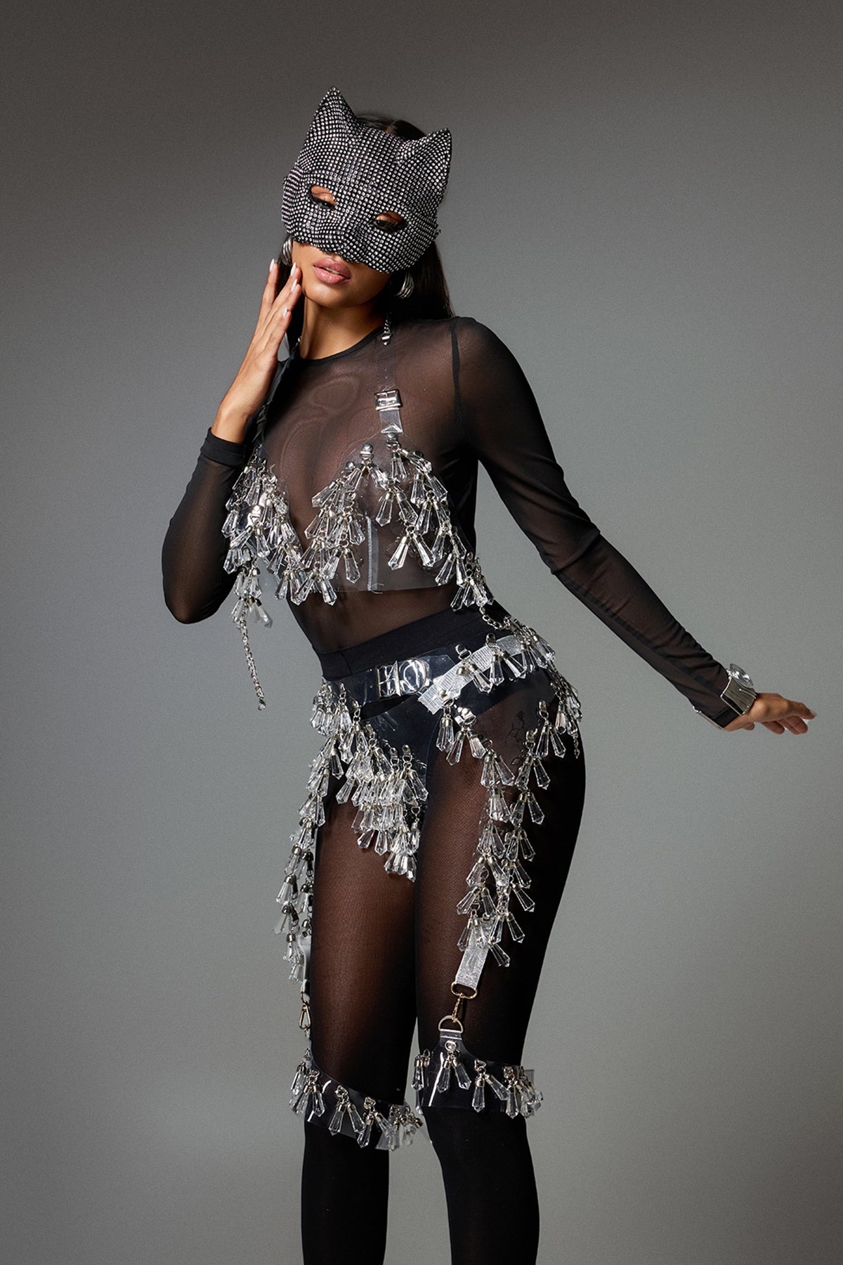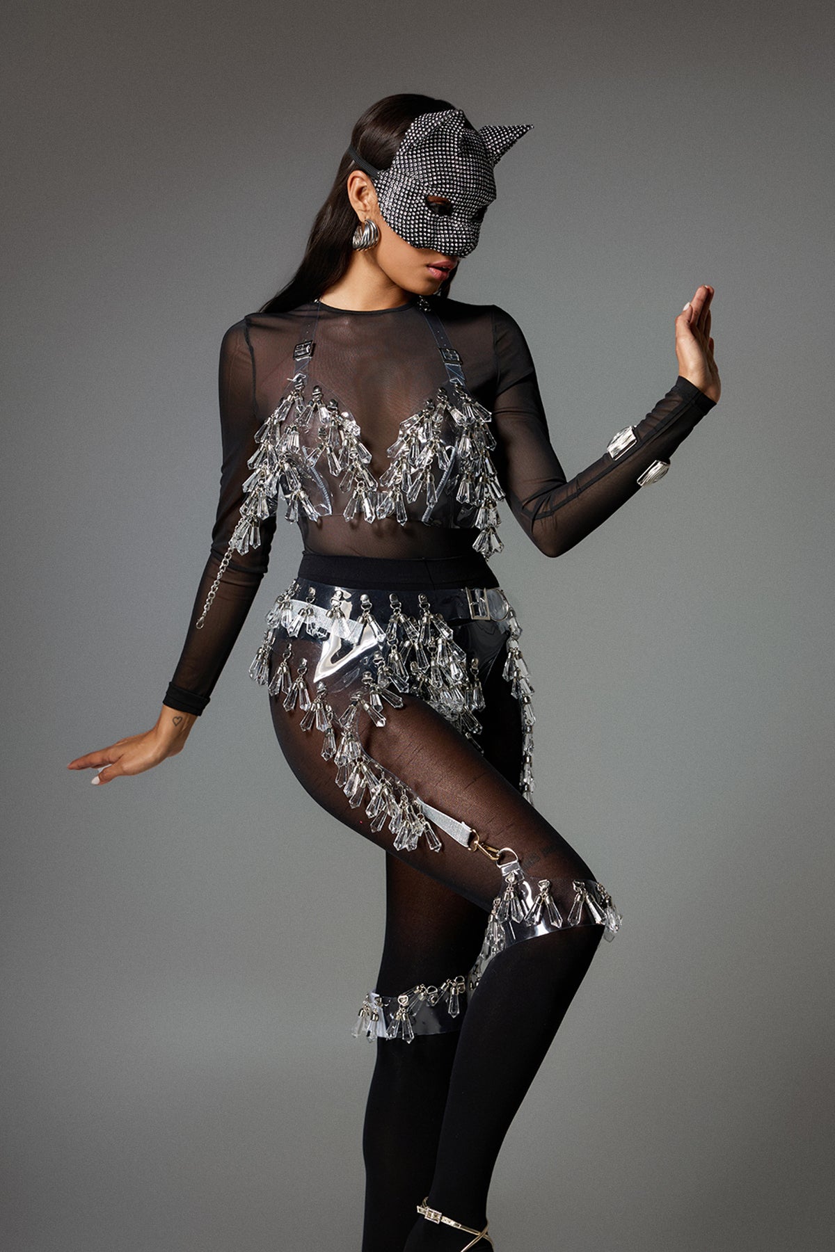 • The sparkling transparent crystal bikini brings an unparalleled visual impact.