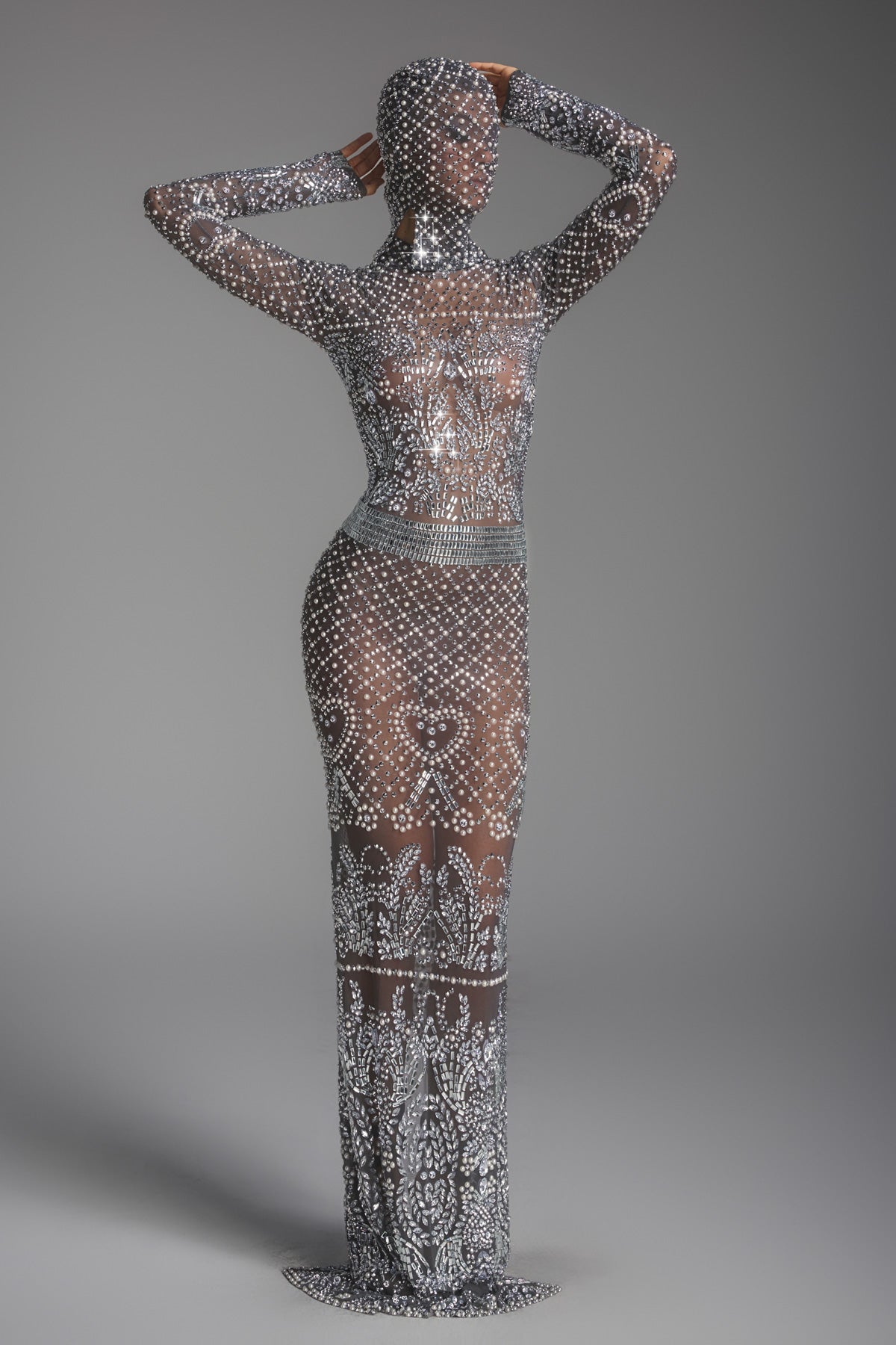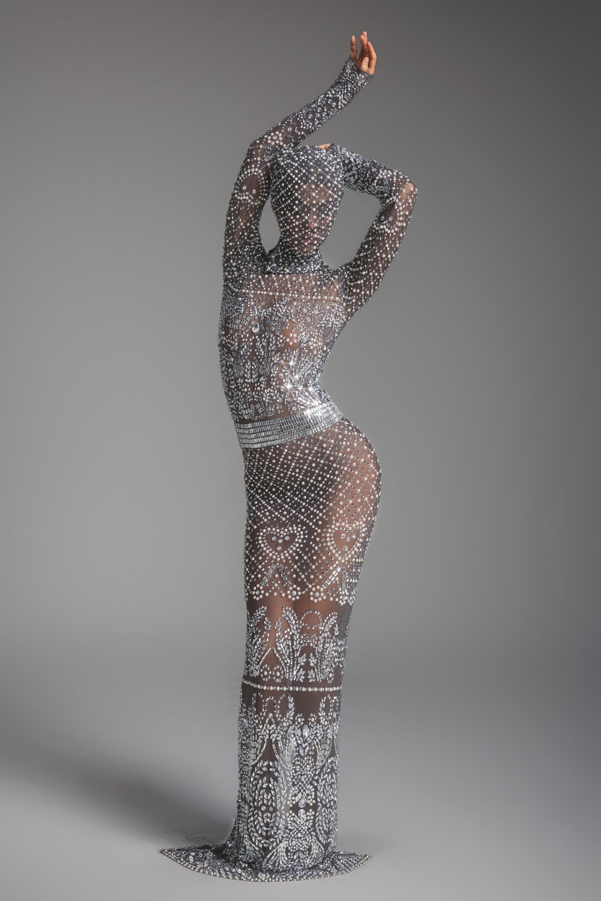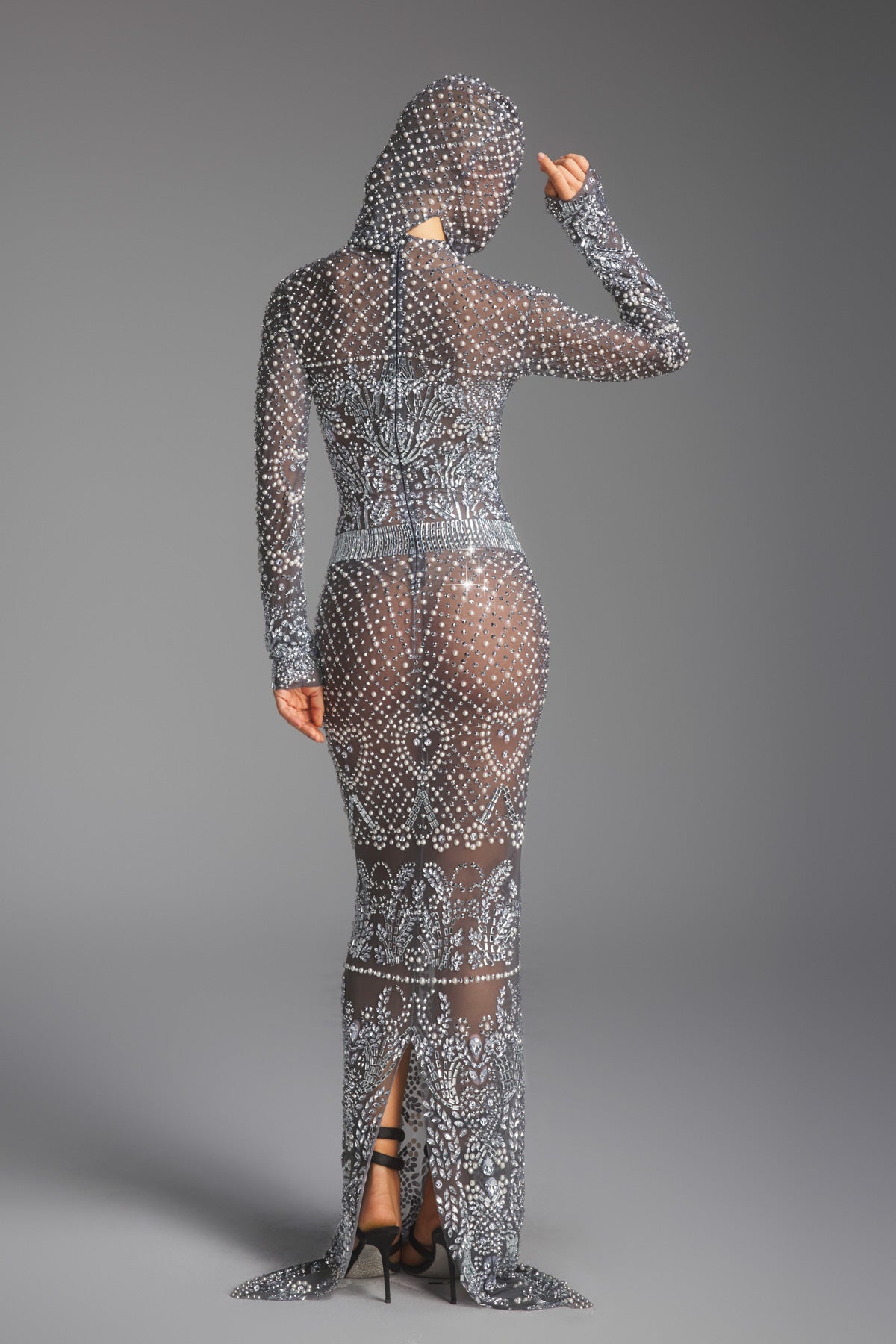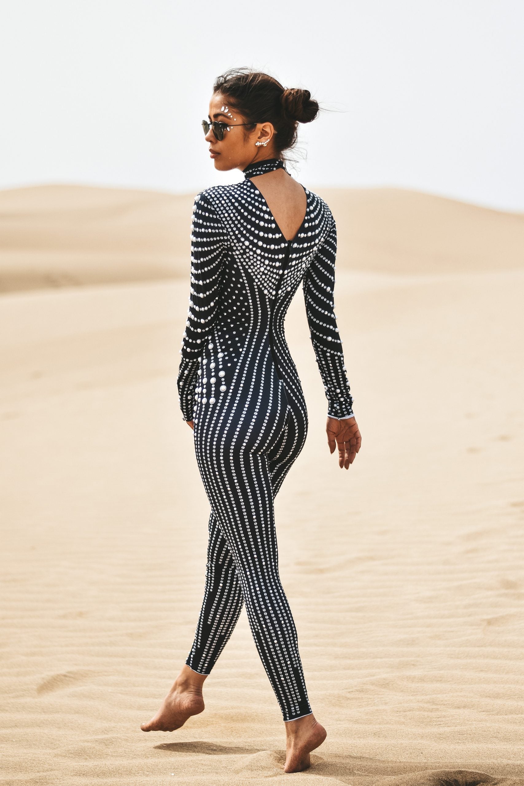 Pedro Mesh Skeleton Printed Rhinestone Jumpsuit