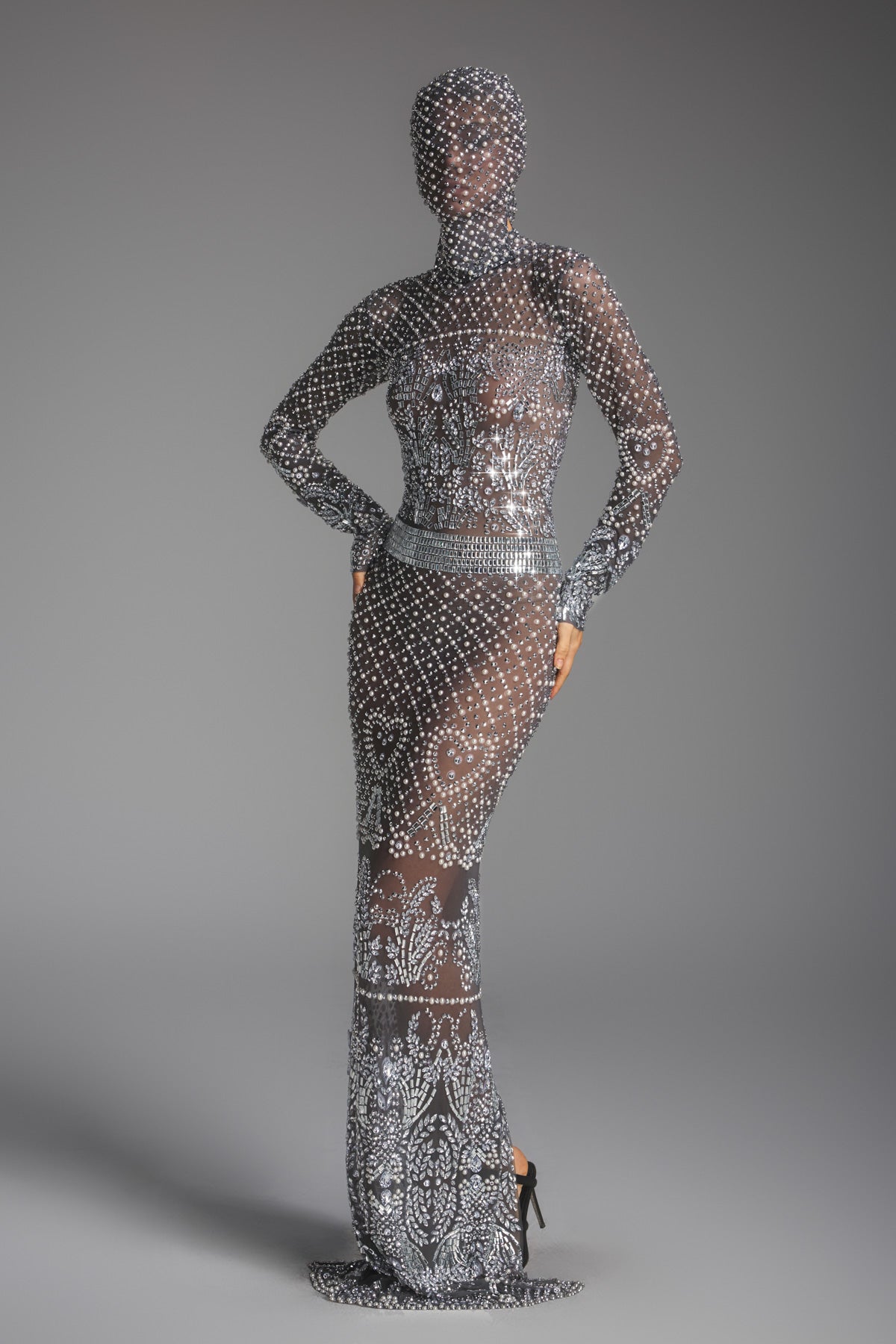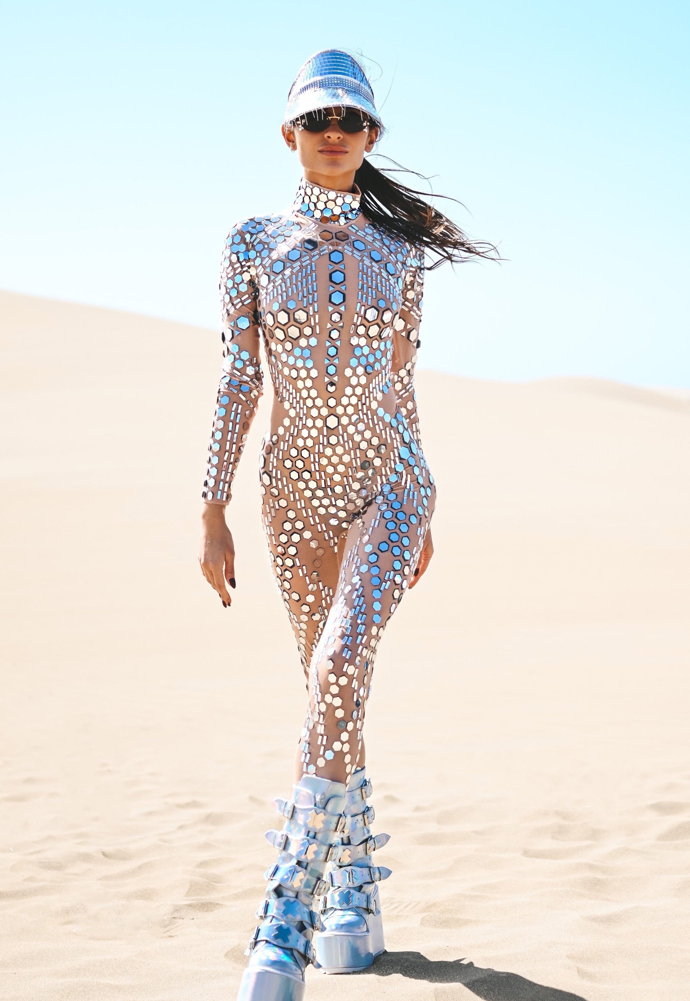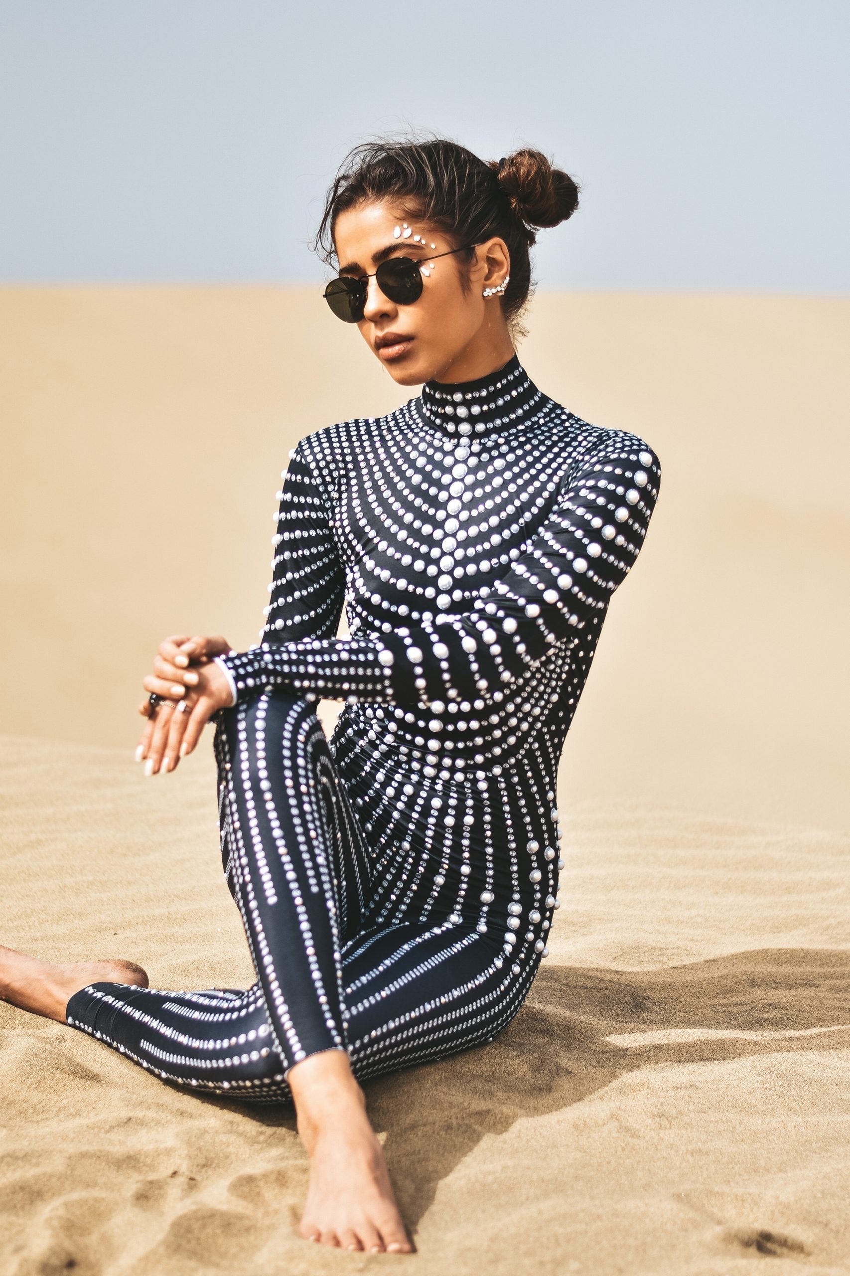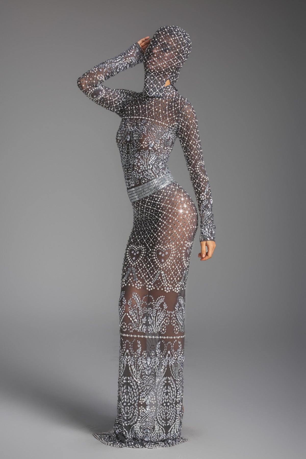 Pedro Mesh Skeleton Printed Rhinestone Jumpsuit
