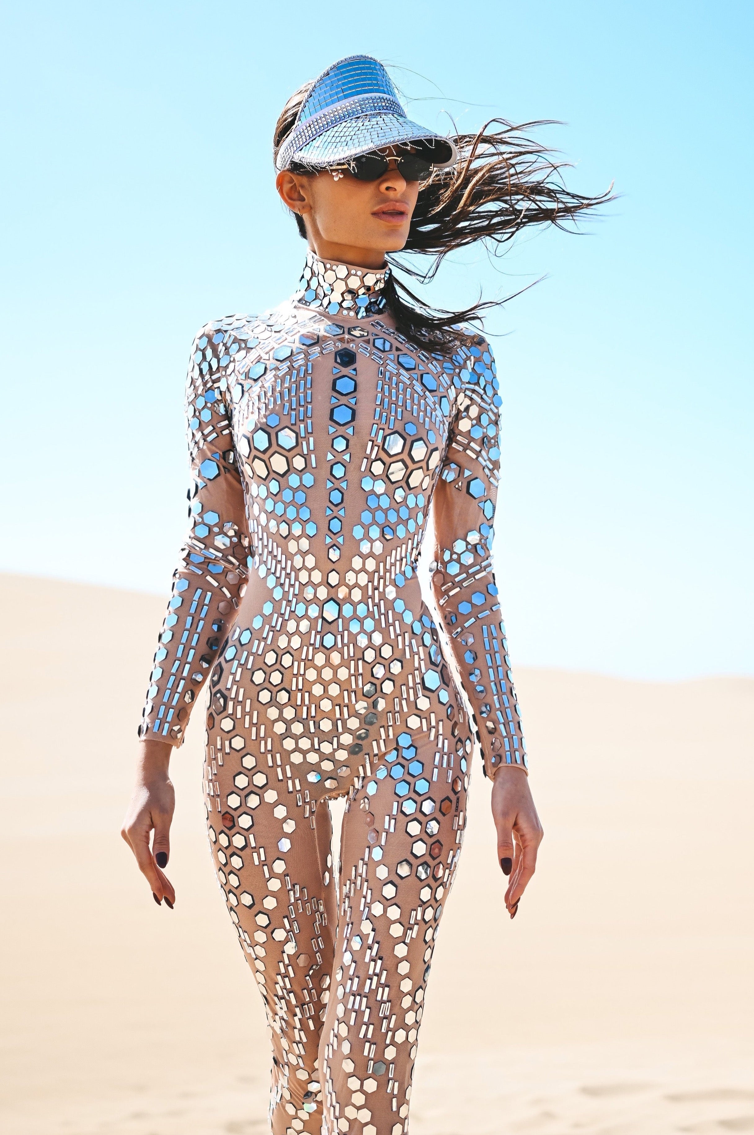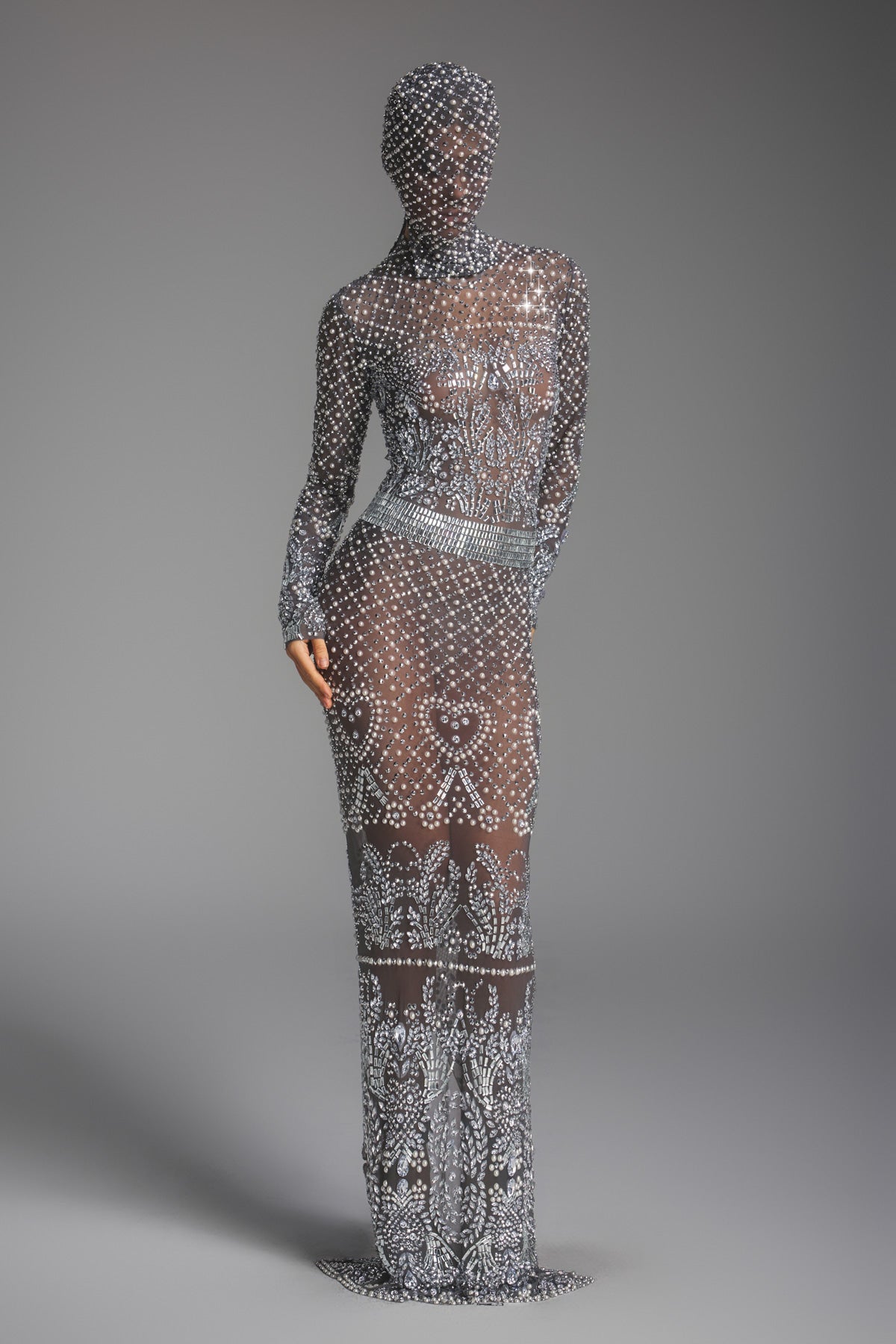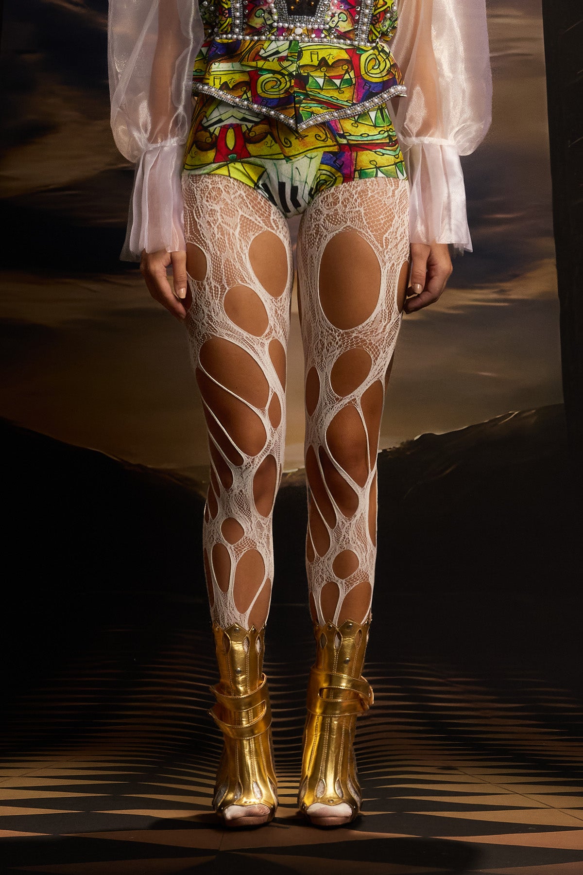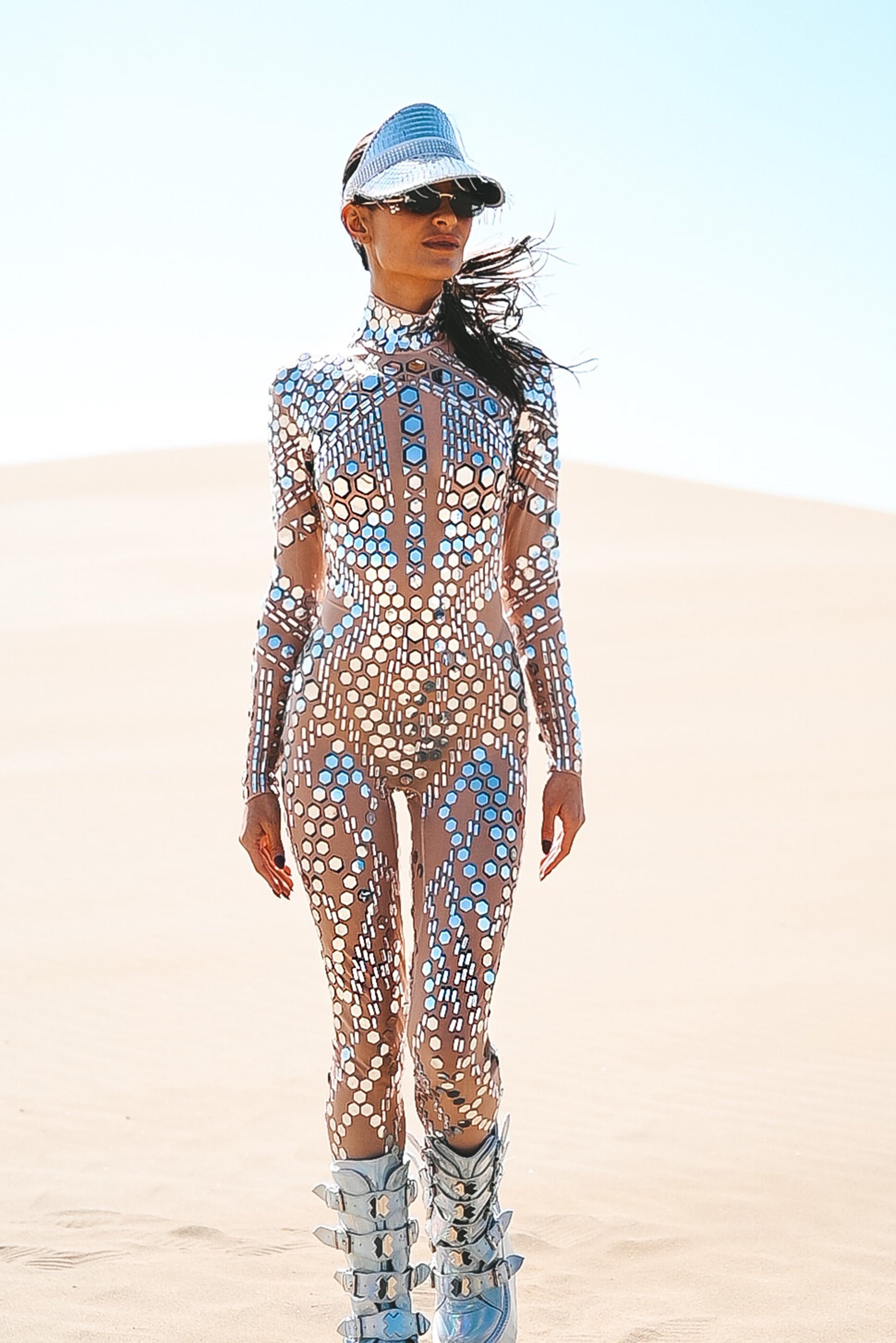 Pedro Mesh Skeleton Printed Rhinestone Jumpsuit