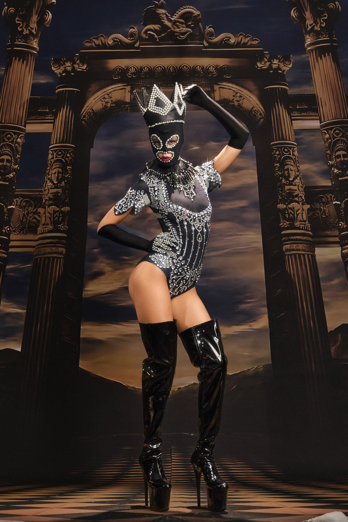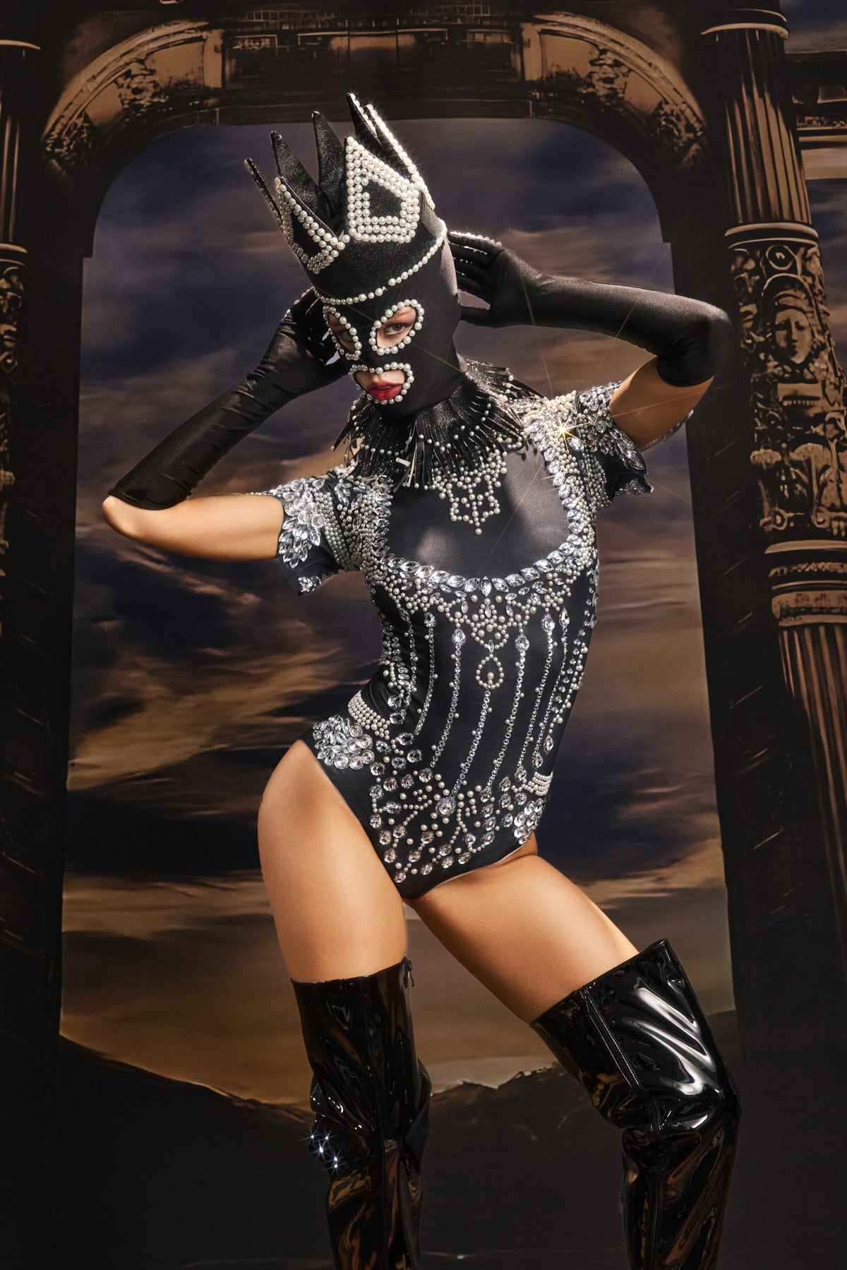 Jireh Rhinestone Pearl Embellished Bodysuit Black