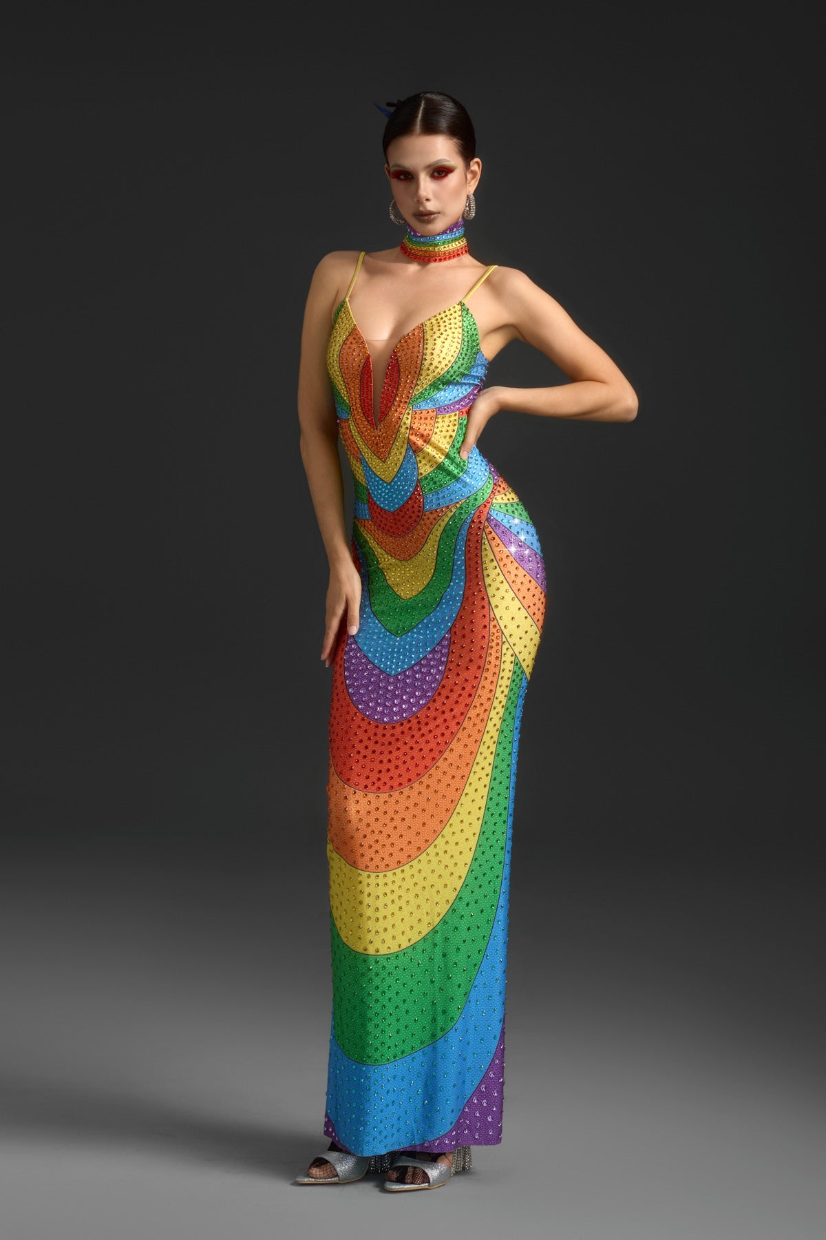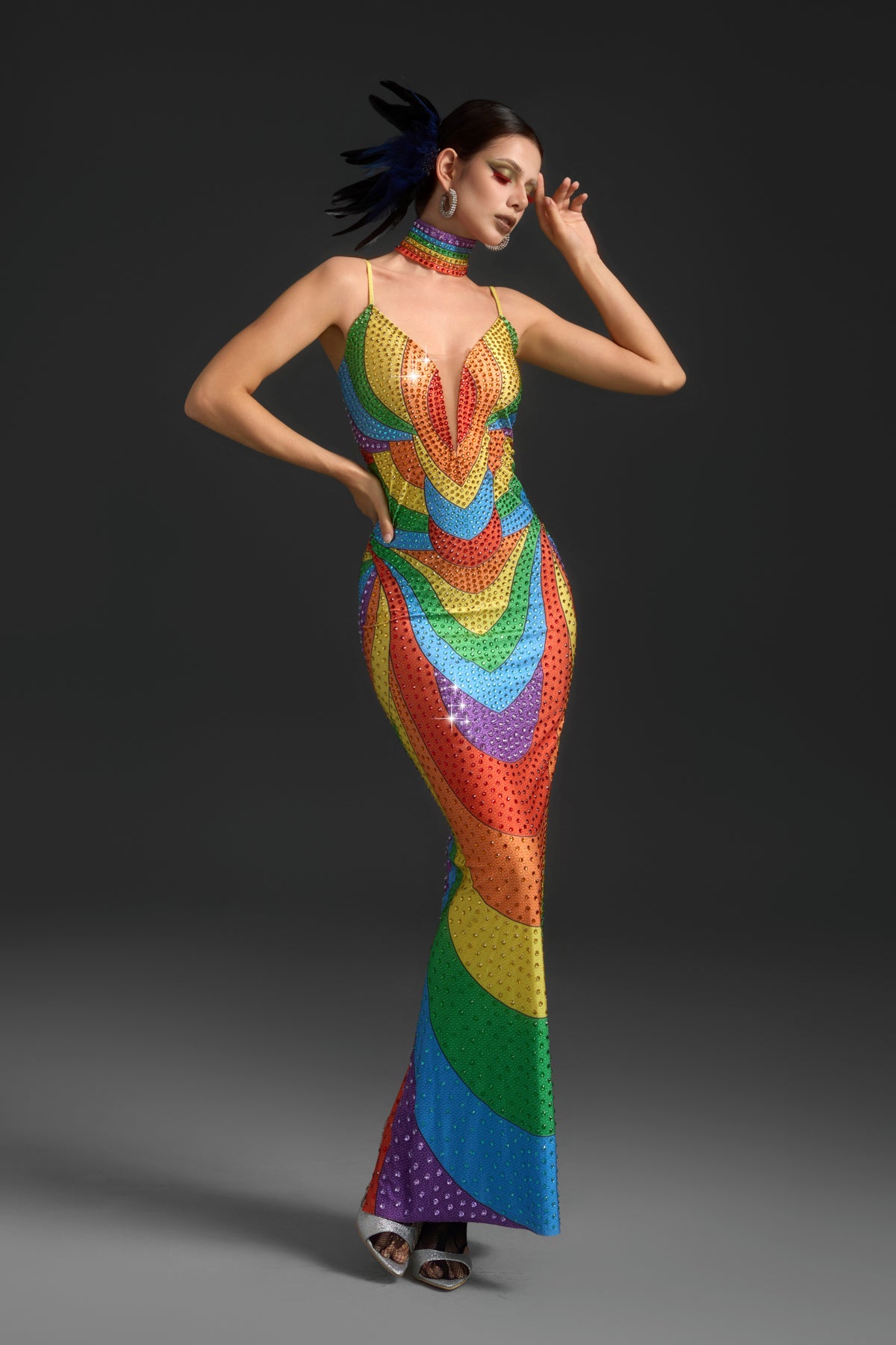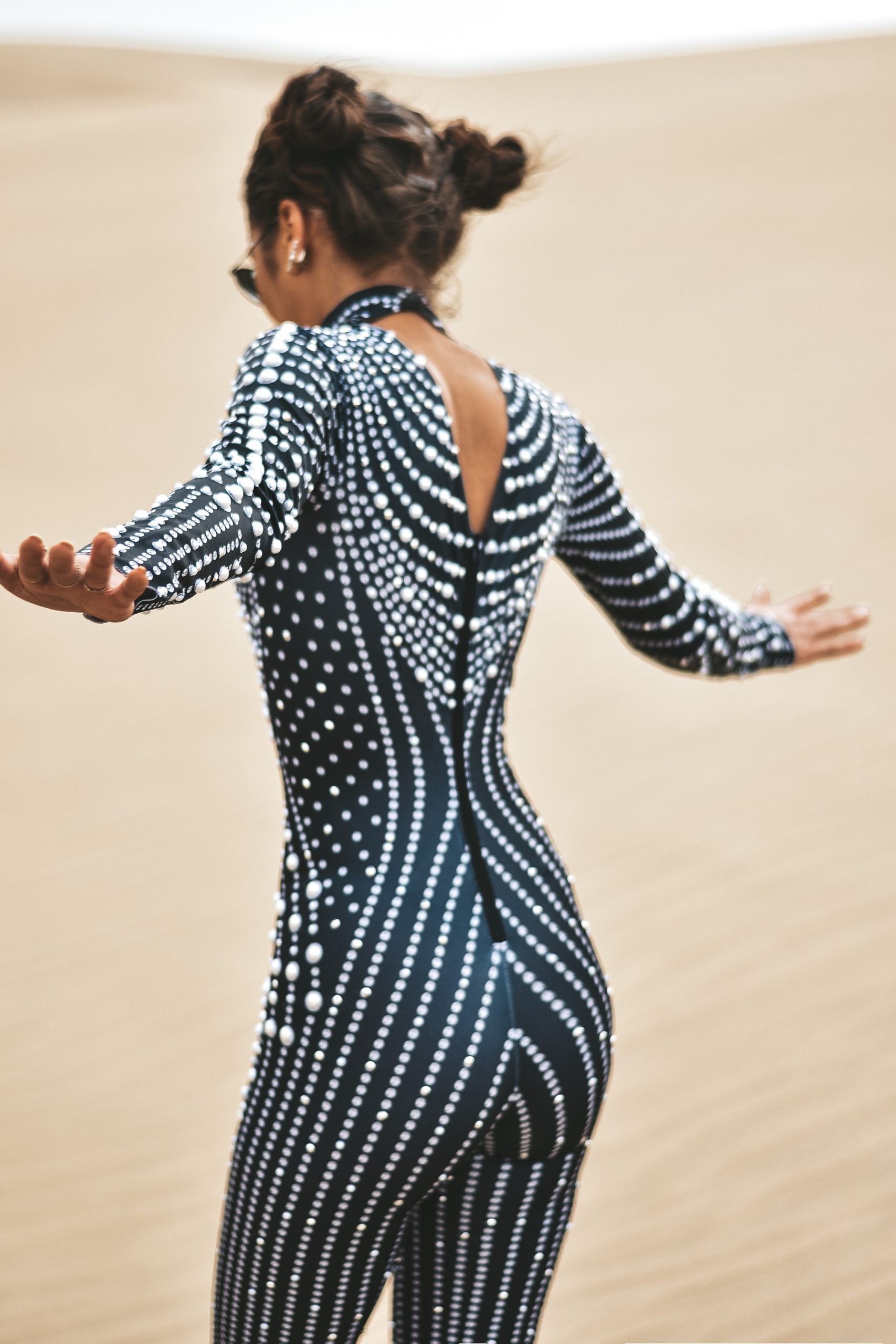 Juan Printed Rhinestone Long Sleeve Jumpsuit