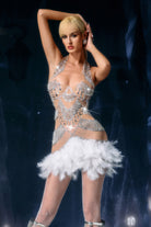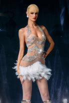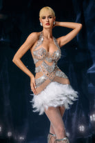 Carita Halter Neck Feather Rhinestone Dress-Spotlight Grace, Ascending Motion Glow