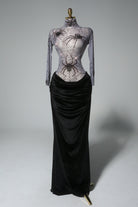- High Neck Silhouette: Enhances sophistication and dramatic presence.