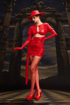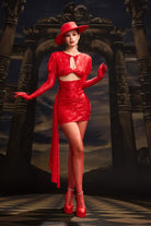 The Rikke Long Sleeve Cutout Mini Dress seamlessly blends sleek sophistication with daring design. Drawing influence from Lady Gaga’s futuristic stage couture, it embodies her instinct for transforming bold silhouettes into unforgettable fashion statements. Featuring a fitted long-sleeve design with strategically placed cutouts and a mini-length silhouette that accentuates the body's natural shape, this dress exudes modern elegance with a hint of boldness. The cutouts create a striking contrast, enhancing the silhouette and adding a daring edge. Perfect for stage performances, upscale events, or statement fashion moments, this dress radiates confidence and refined style.