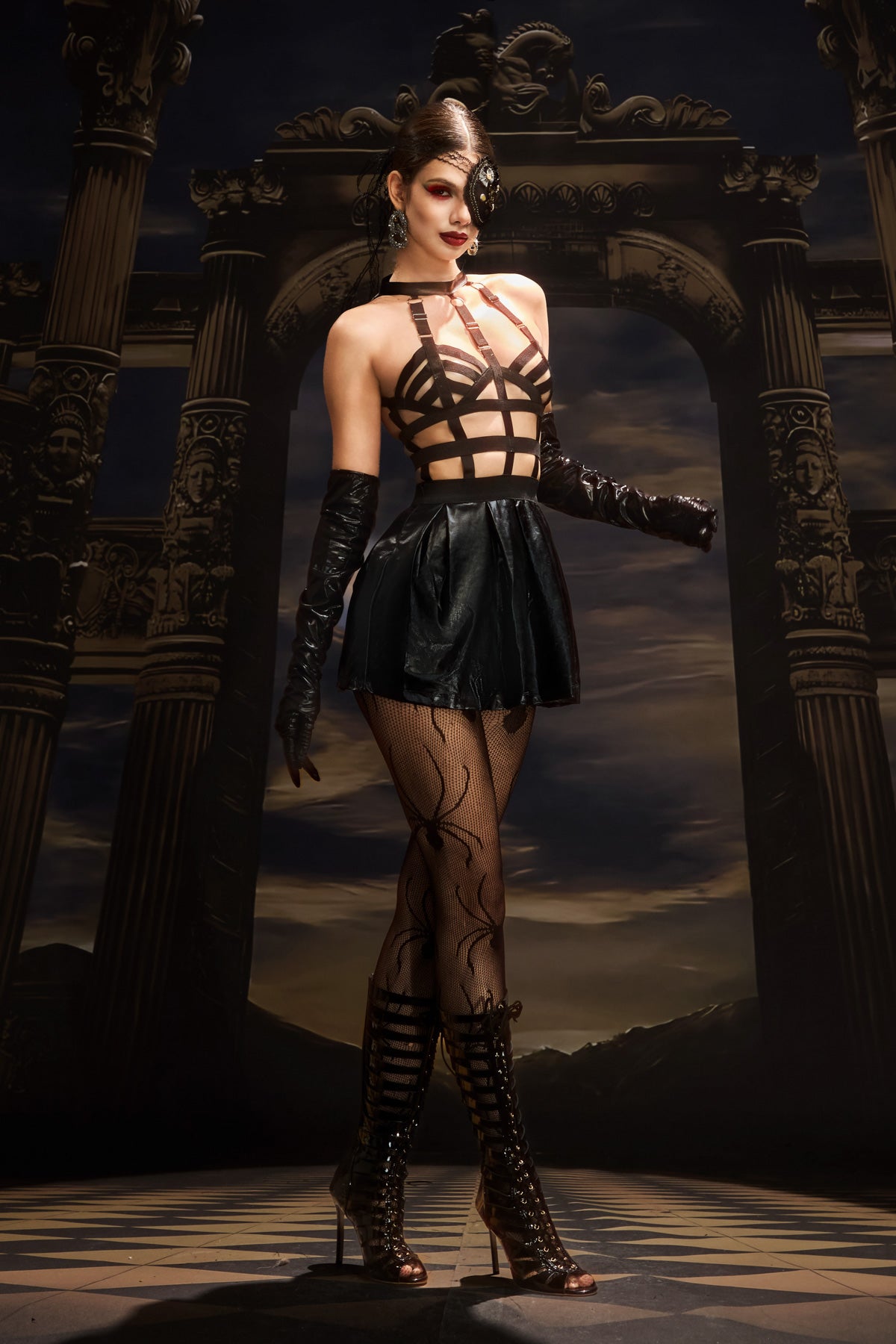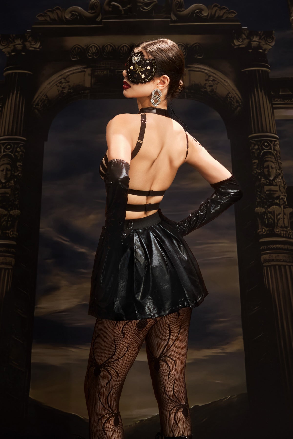 The Saga Cutout Halter Neck Pleated Dress embodies modern femininity through its graceful movement and bold design. Inspired by Lady Gaga’s fluid yet daring stage elegance, it channels her talent for turning sculpted silhouettes into hypnotic, performance-ready statements. Featuring a halter neckline with refined cutout detailing, this dress sculpts the shoulders and neckline while highlighting the waist with a fluid pleated skirt. The mini length adds a youthful, dynamic edge, creating the perfect balance between sophistication and energy. Ideal for performances, high-fashion events, or statement evenings, this dress captures effortless elegance in motion.