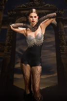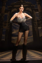 The Zinnia Spaghetti Rhinestone Playsuit delivers a perfect balance of sensual minimalism and show-stopping brilliance. Featuring delicate spaghetti straps and a sleek silhouette adorned with intricate rhinestone embellishments, this piece shines effortlessly under the spotlight. The streamlined cut enhances movement and allure, while the radiant sparkle creates a captivating stage presence. Designed for high-energy performances, photoshoots, or glamorous showcases, this playsuit embodies modern elegance with a bold, luminous edge.