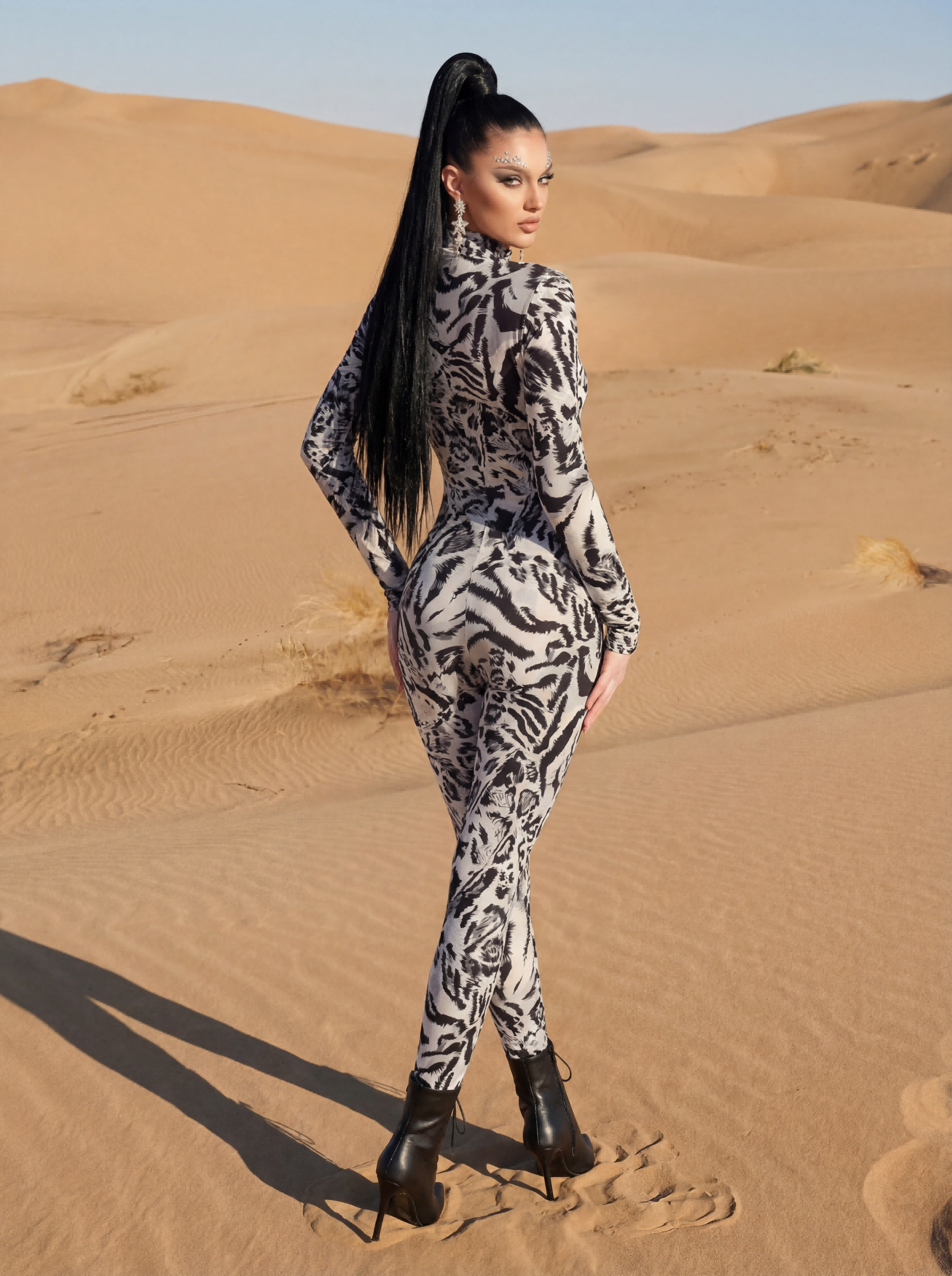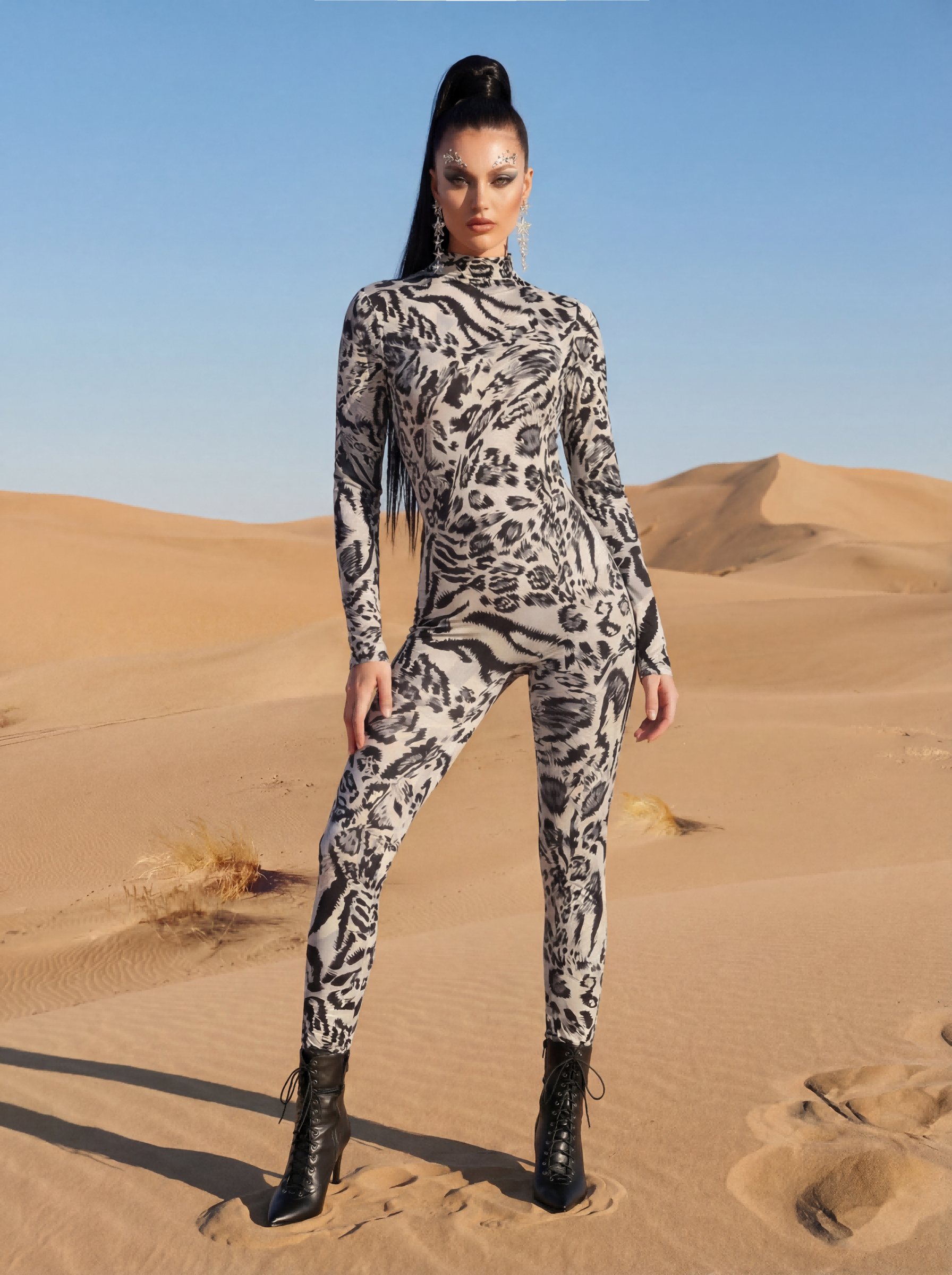 Nyrvyn Leopard Printed Long Sleeve Jumpsuit