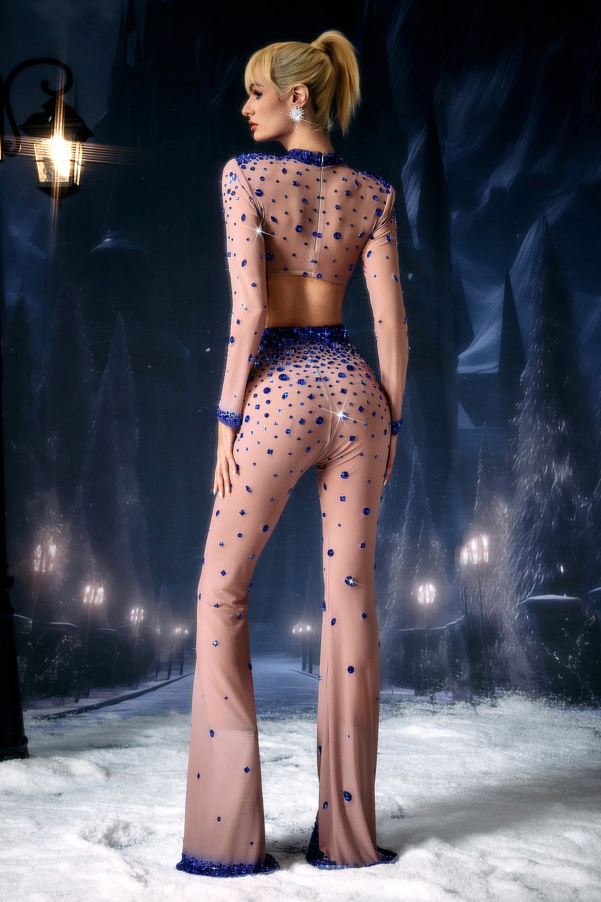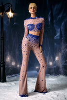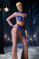 Alfhild Long Sleeve Rhinestone Pants Set-Spotlight Lines, Radiant Command