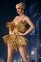 The Anneli Halter Neck Fringe Skirt Set brings a sleek, performance-driven energy with its sculpted halter neckline and flowing fringe skirt that amplifies movement with light-catching sway. The fitted top creates clean upper-body lines, balancing strength and elegance, while the layered fringe introduces vibrant motion that reads clearly under stage or spotlight conditions. The coordinated set forms a cohesive, elongated silhouette that turns every step, spin, or pose into a visual sweep of controlled rhythm and shine—perfect for choreography, showtime entrances, or any moment that calls for expressive, modern stage presence.
