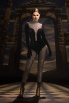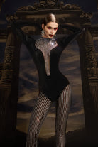 The August Long Sleeve Rhinestone Pants Set blends refined structure with radiant detailing. Featuring a sleek long-sleeve bodysuit and matching rhinestone pants, this ensemble delivers a seamless silhouette that moves with effortless grace. Designed for high-impact stages or glamorous showcases, it captures light and attention from every angle. Confident, modern, and meticulously crafted, this set transforms sparkle into strength.