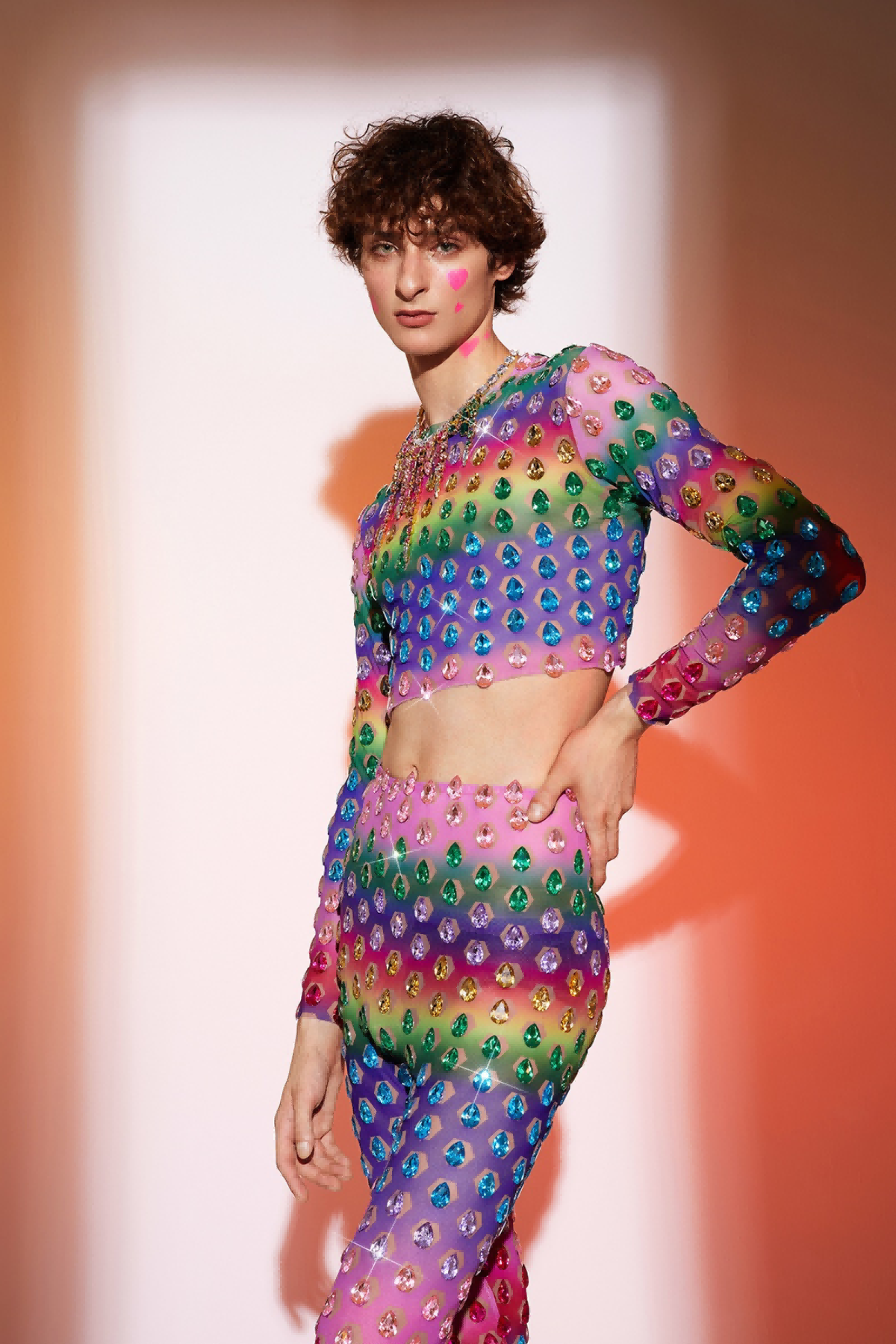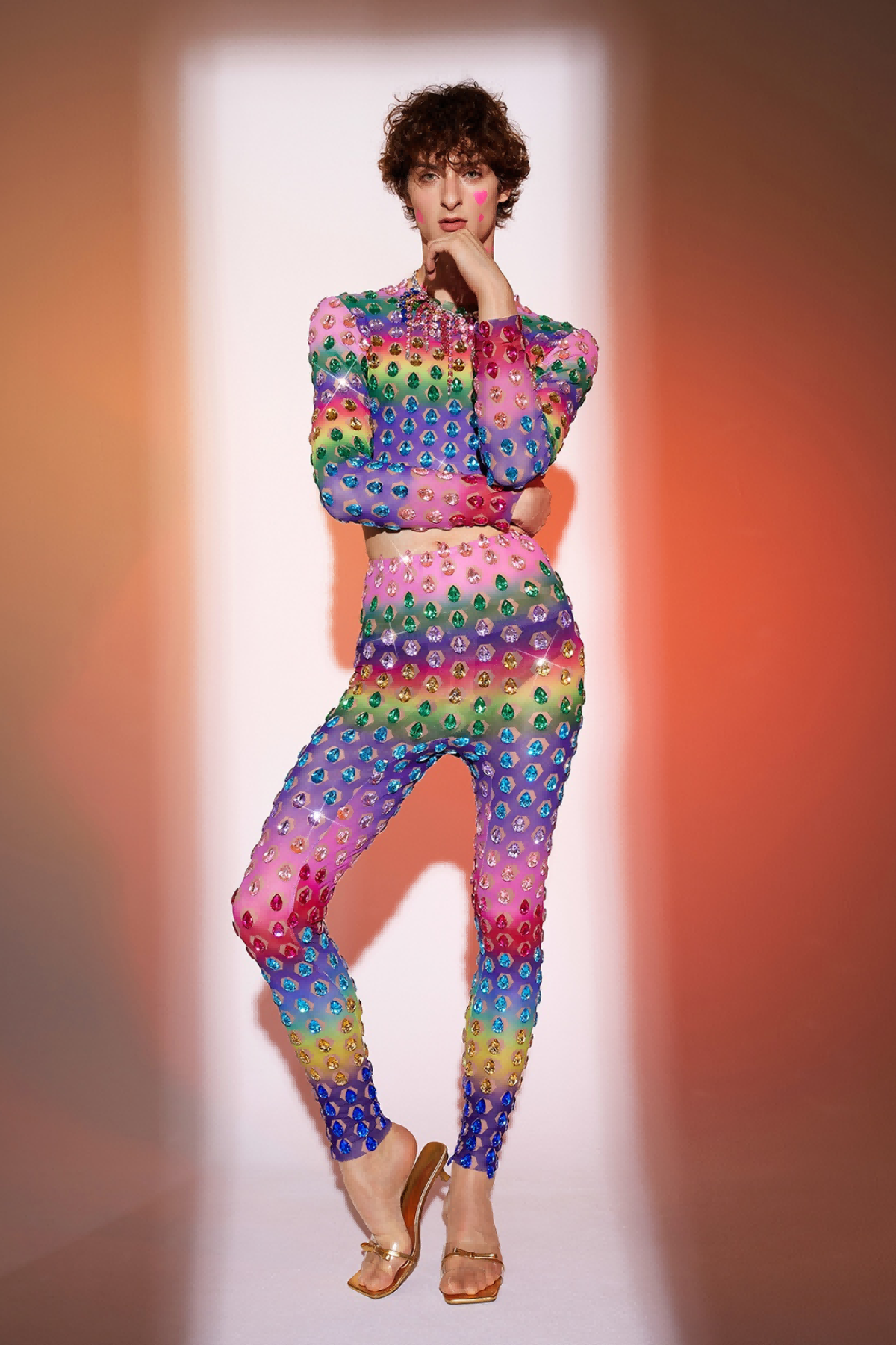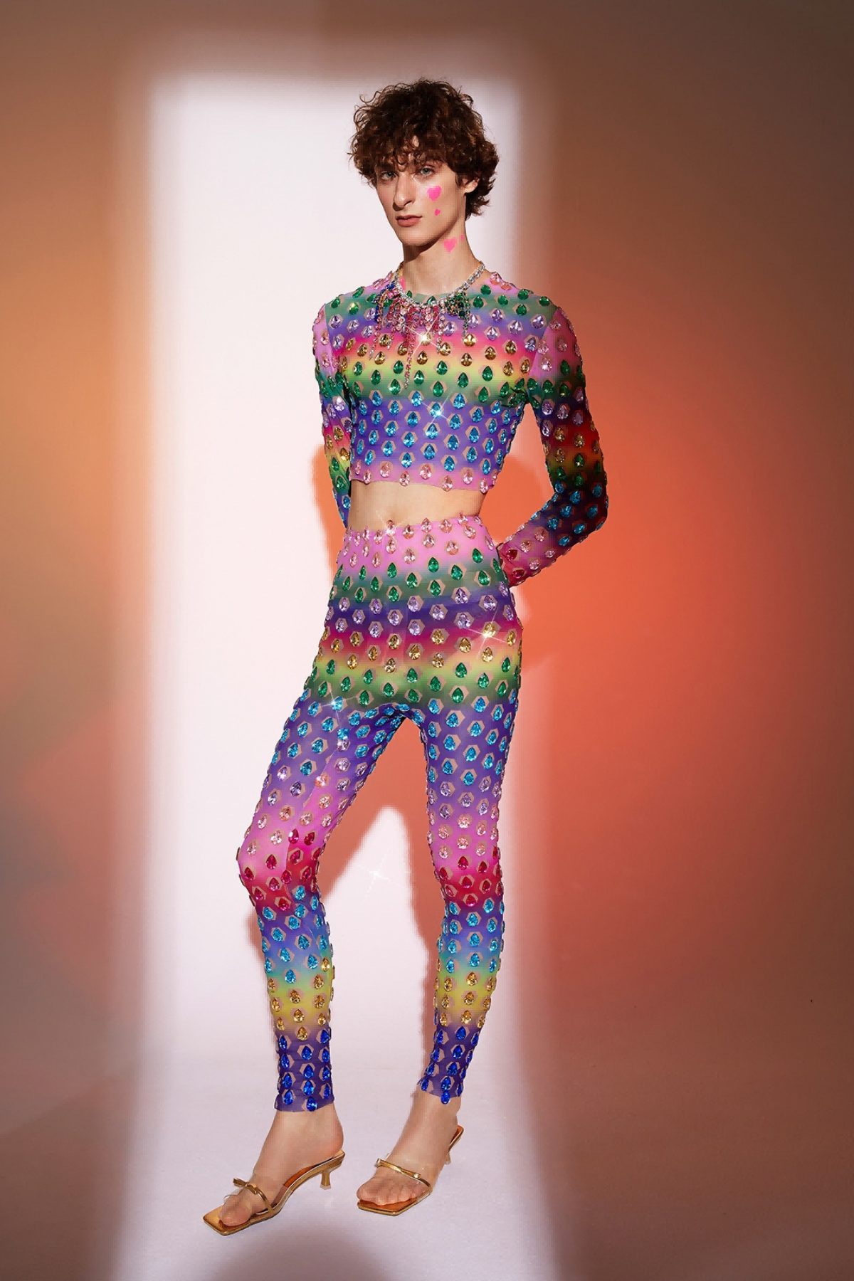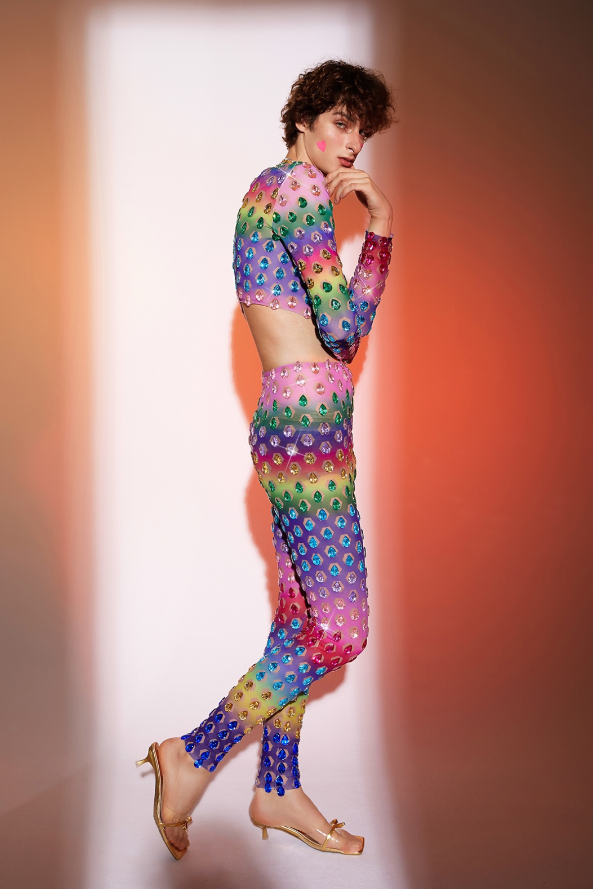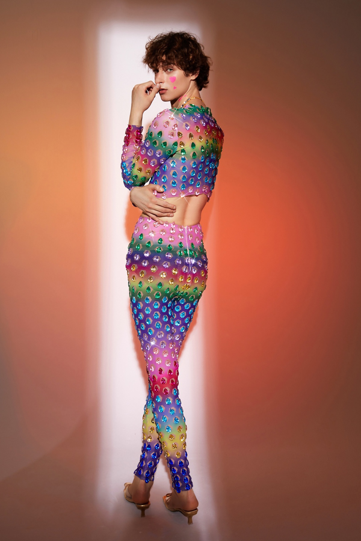 Benita Rainbow Crystal Pants Set-Shining Multi Color Light