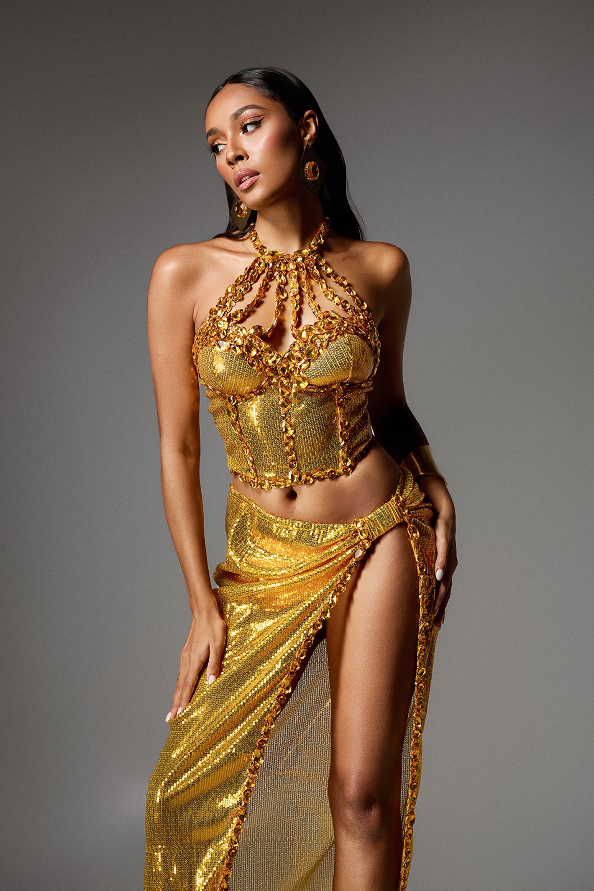 Arya Spaghetti Butterfly Rhinestone Skirt Set