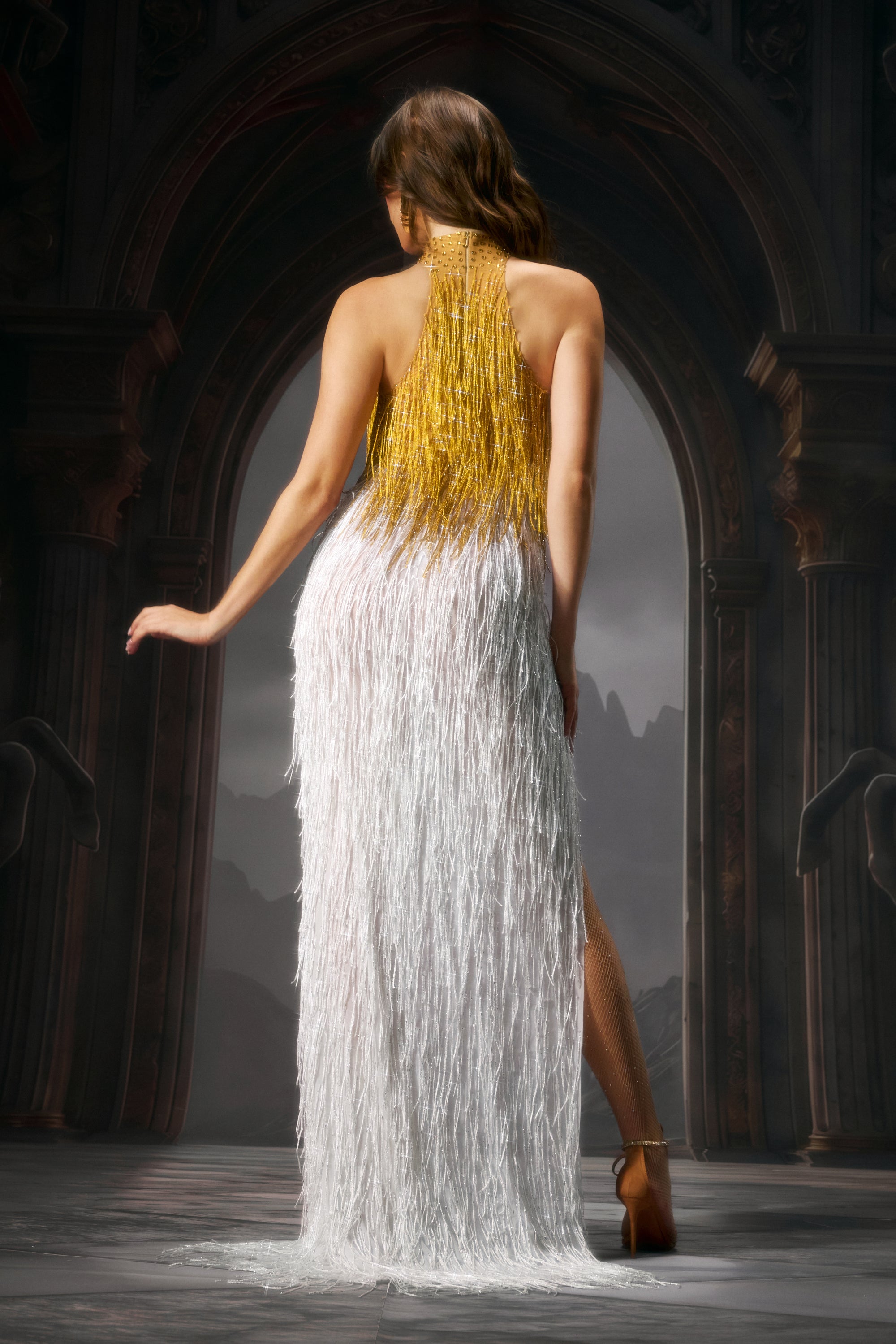 Aksia Split Fringe Cutout Maxi Dress