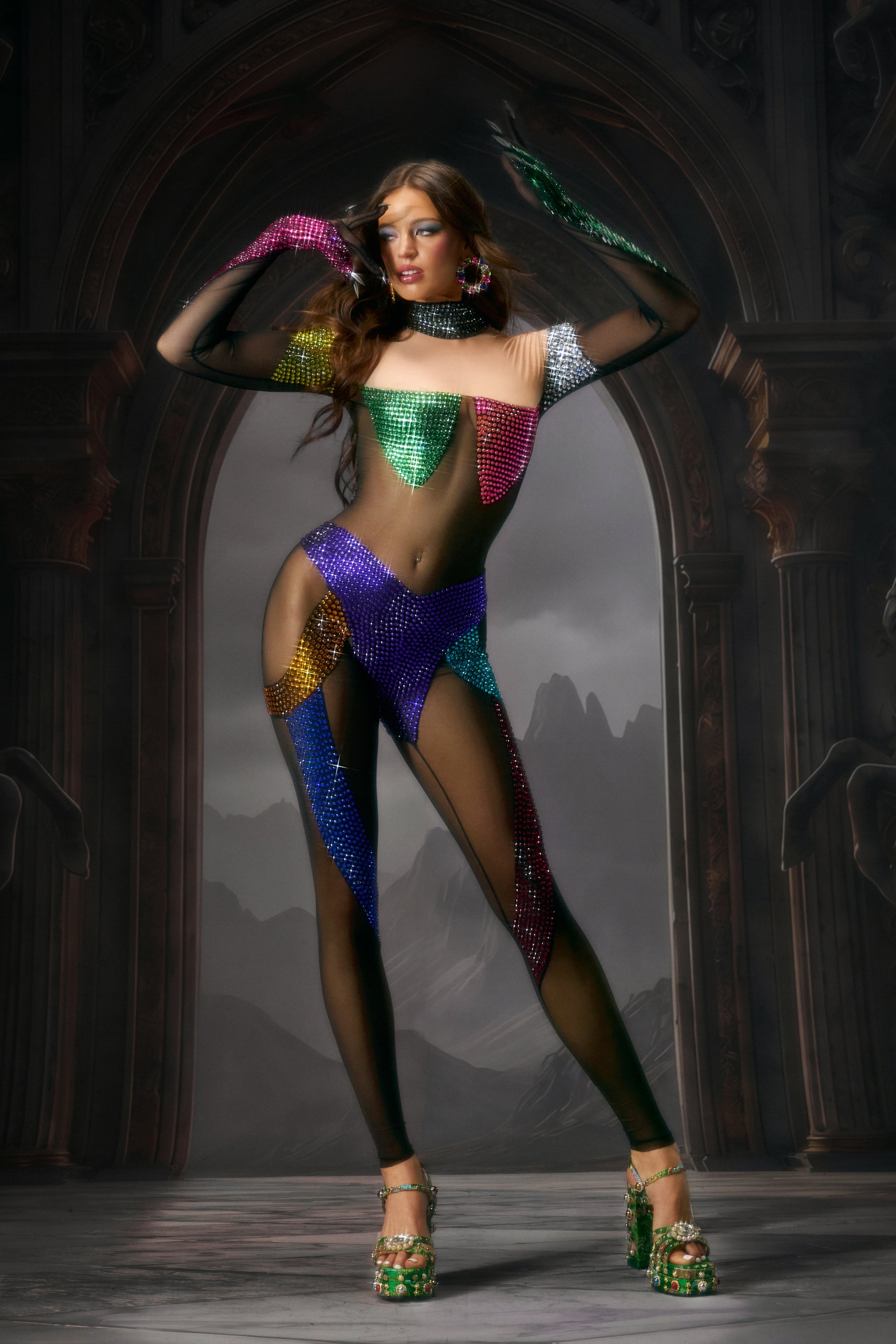 Askaia Sleeveless Fringe Crystal Bodysuit
