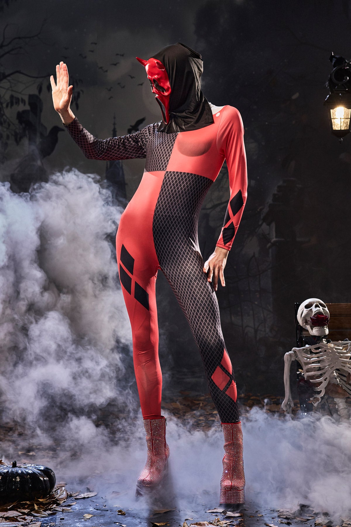 - Black and red diamond print for a harlequin-inspired look
