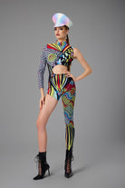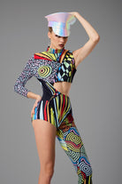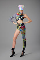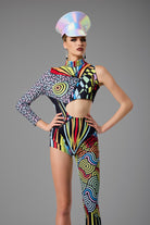 The Omari One Shoulder Printed Jumpsuit merges sleek design with bold individuality. Featuring a striking asymmetric neckline and expressive allover print, it creates a fluid, sculpted silhouette that captures movement and attitude. The fitted cut enhances natural curves while the print amplifies visual impact, making it a perfect choice for performances, parties, or elevated fashion moments.