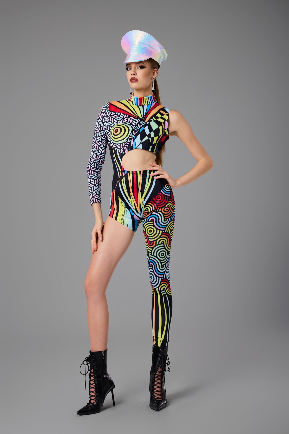 Omari One Shoulder Printed Jumpsuit-Dynamic Elegance in Asymmetric Print”