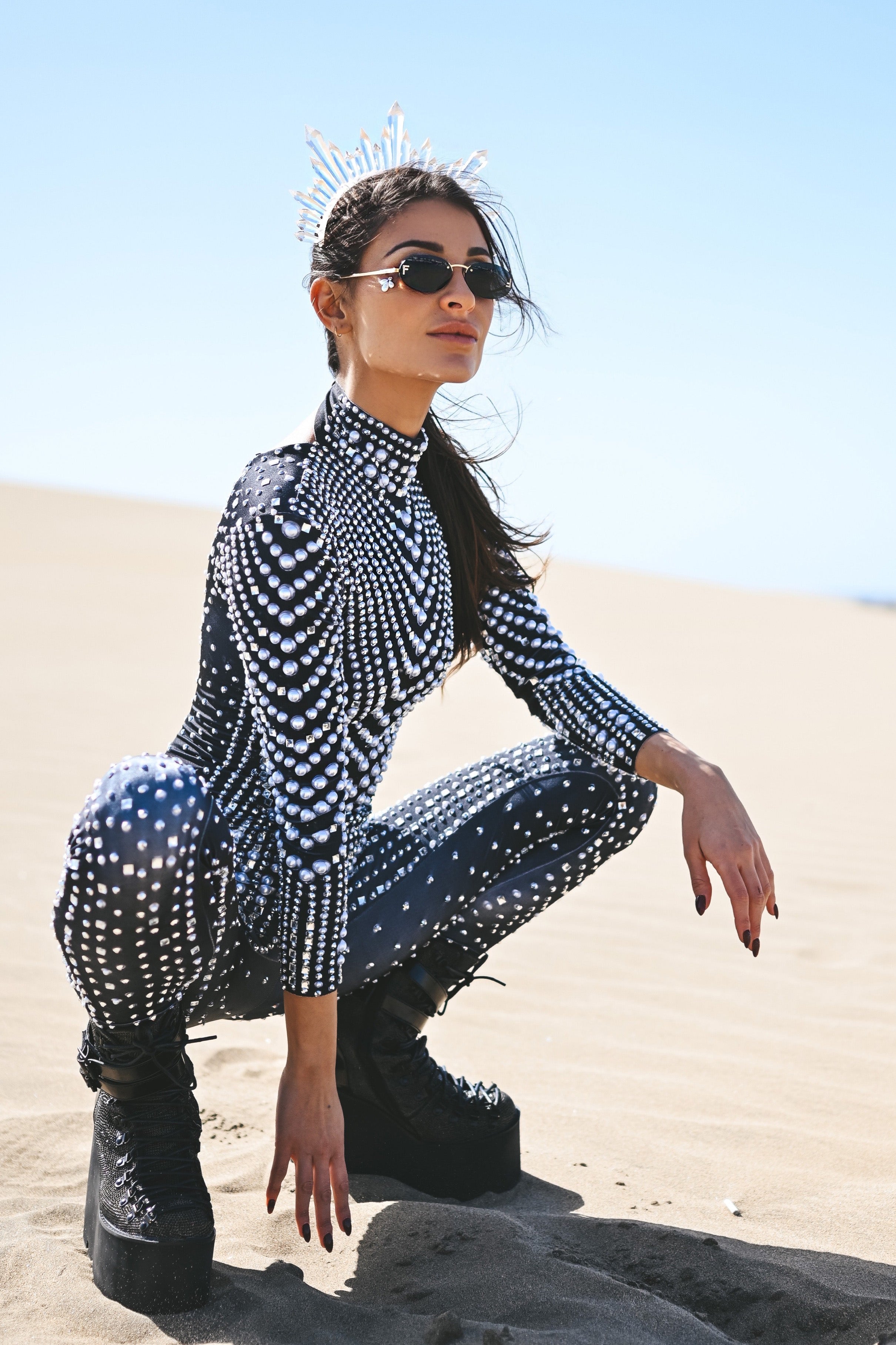 Emelia Long Sleeve Mirror Rhinestone Bodysuit