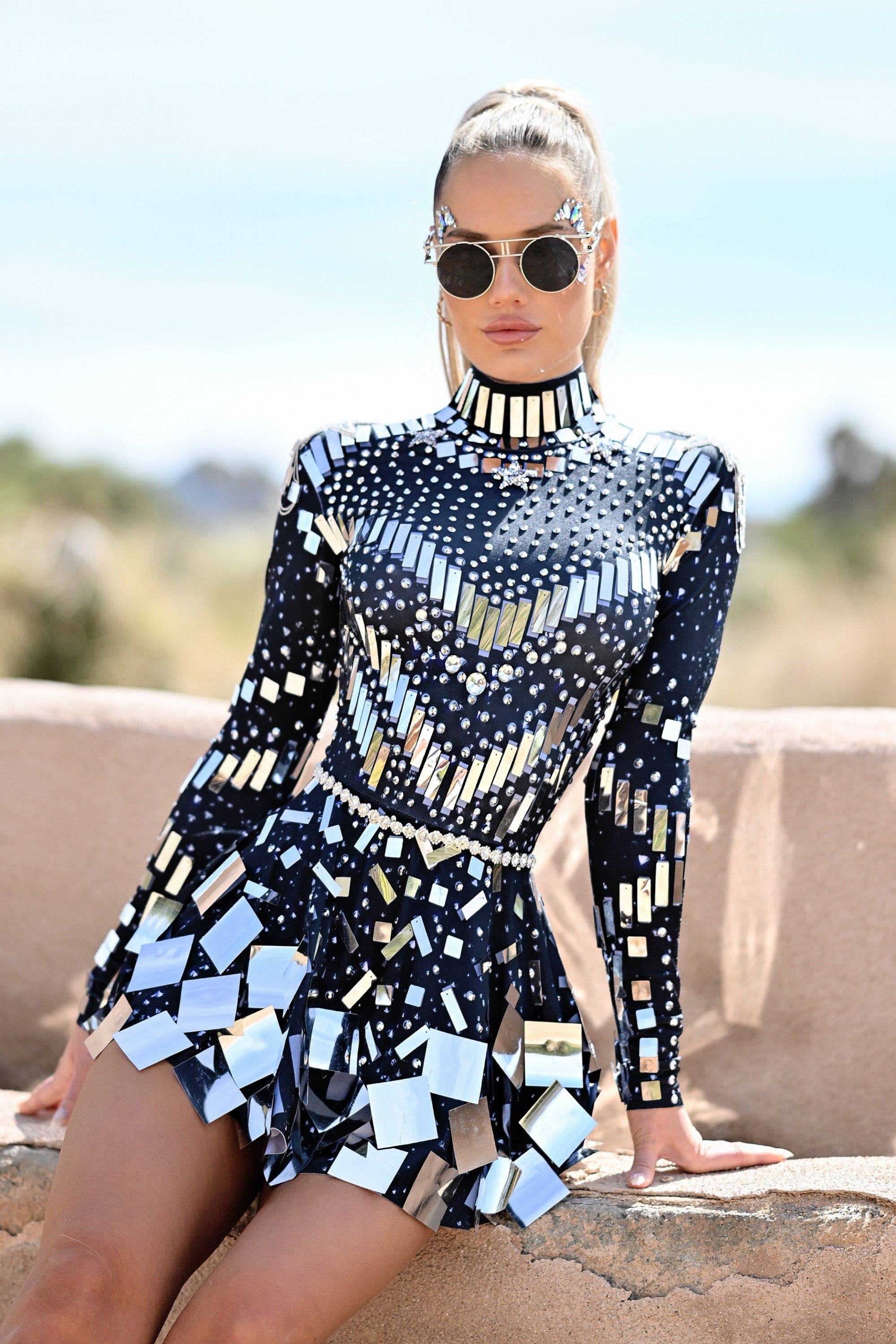 Monroe Rhinestone Fringe Bodysuit Set Silver