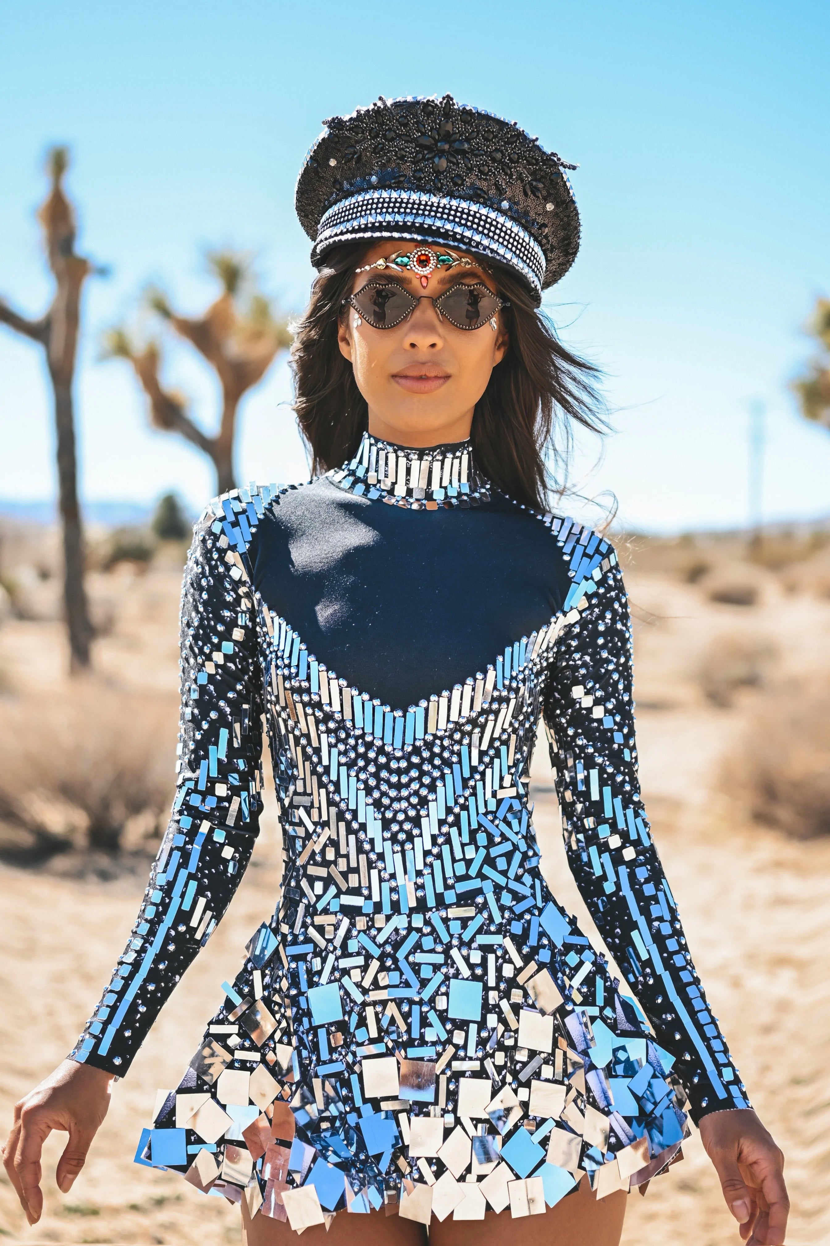 Winnie Rhinestone Bodysuit In Blue