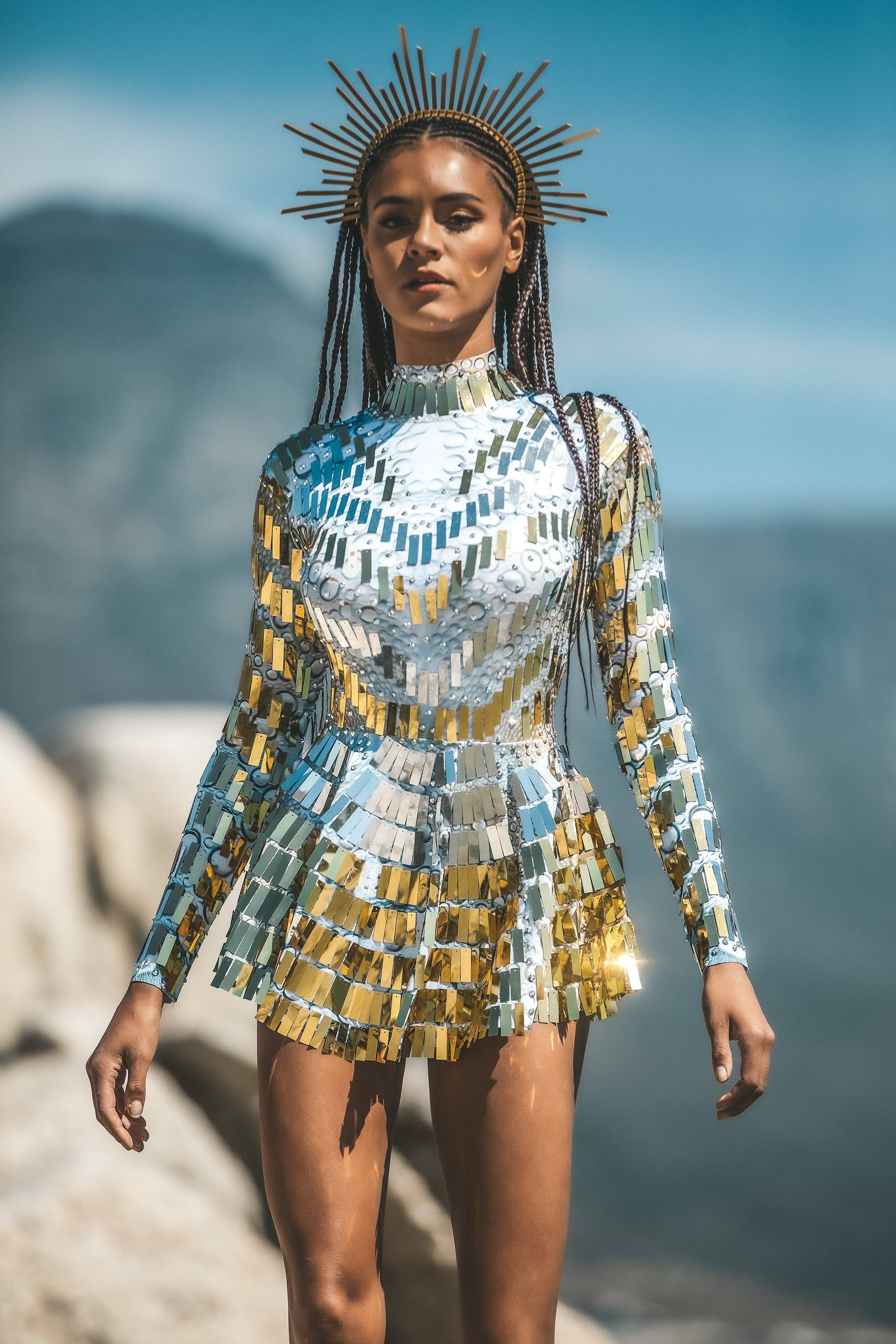 Rory Sequin Fringe Dress Gold