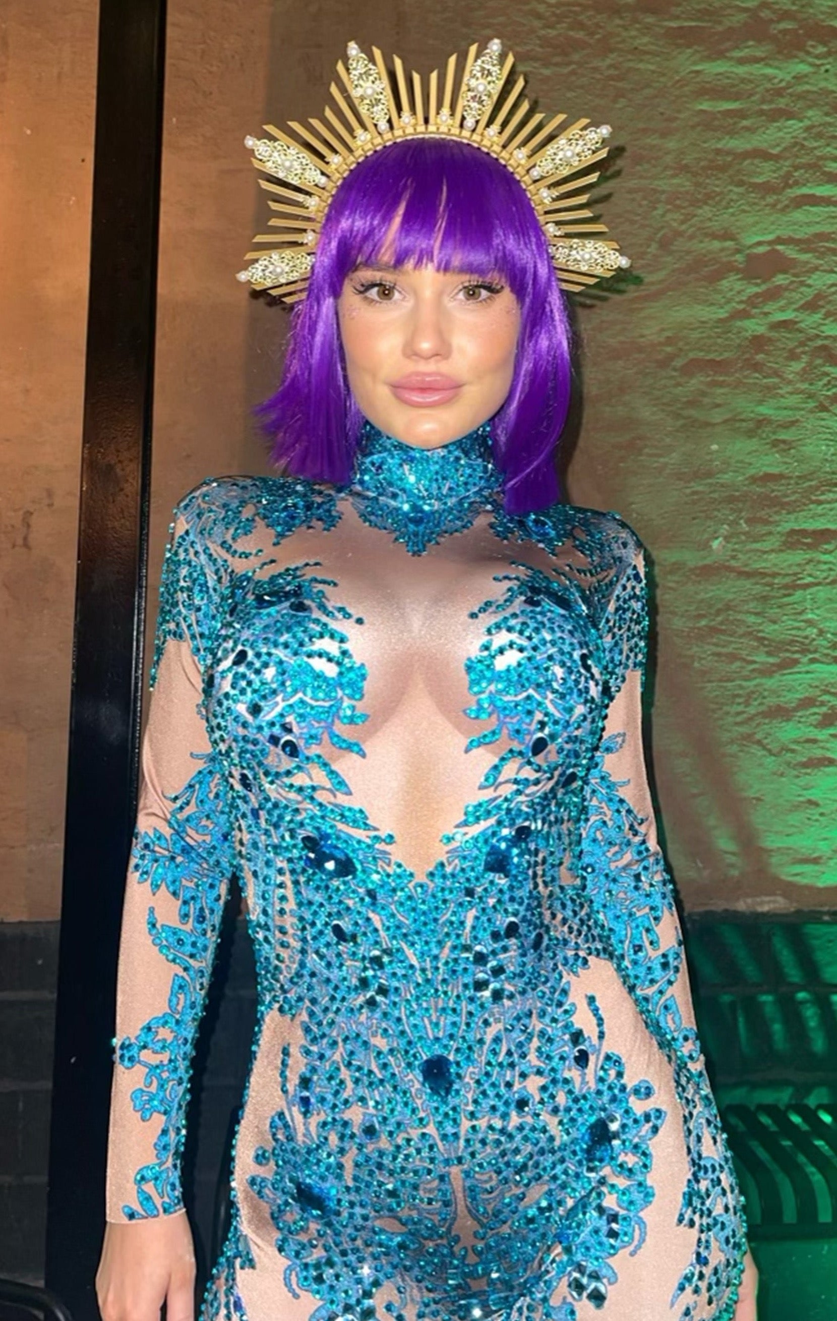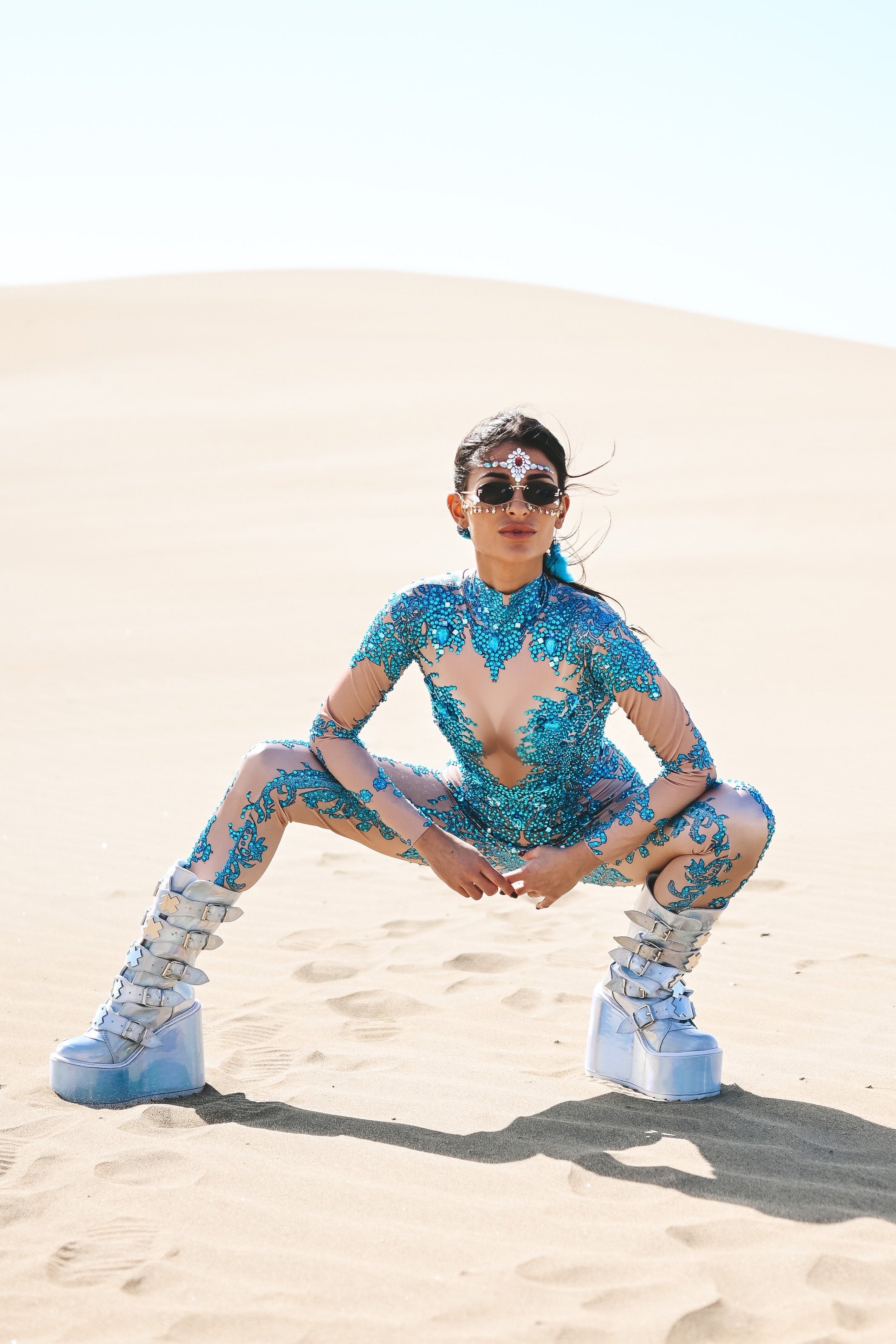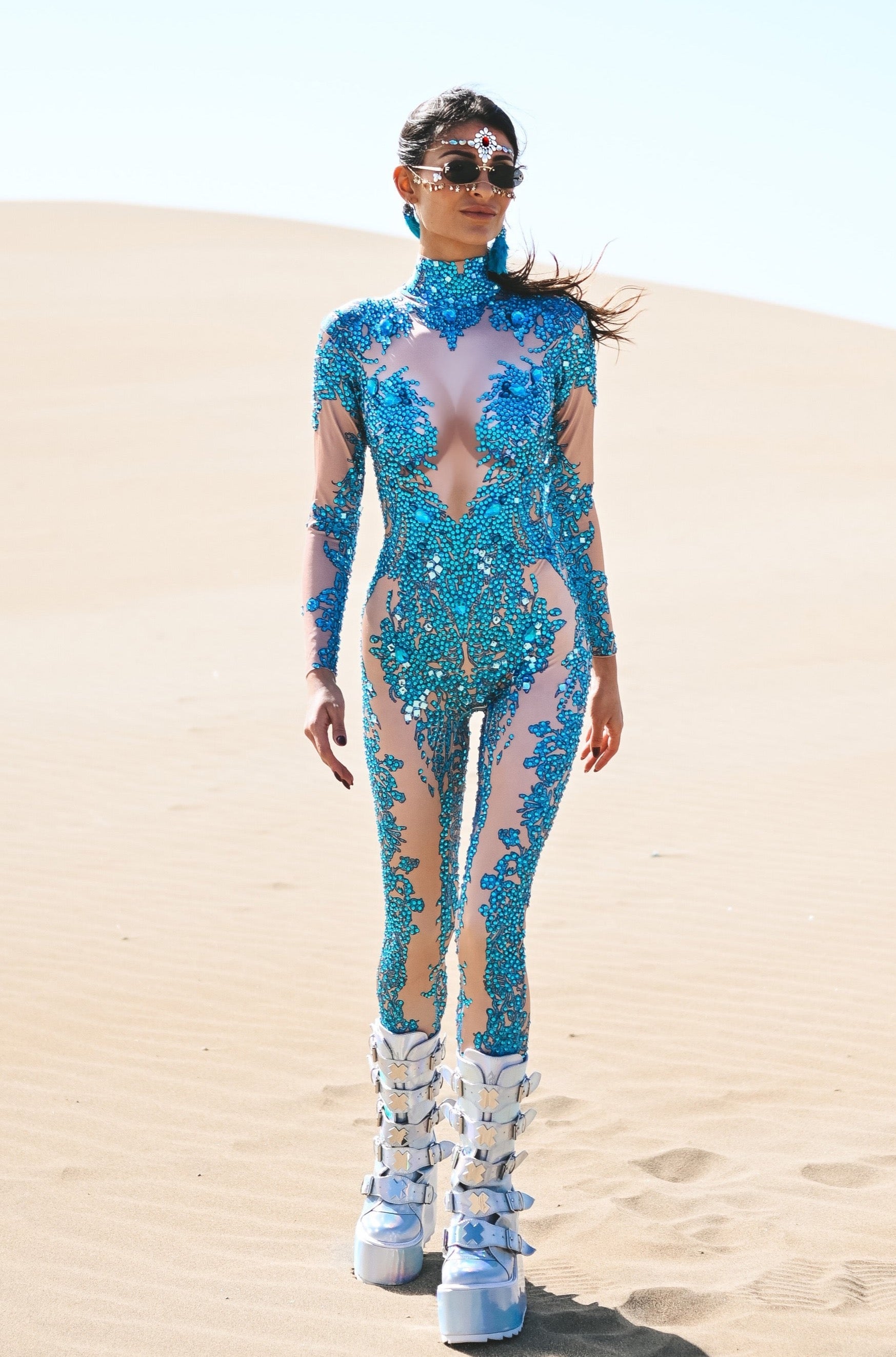 Veronica Long Sleeve Rhinestone Jumpsuit Blue