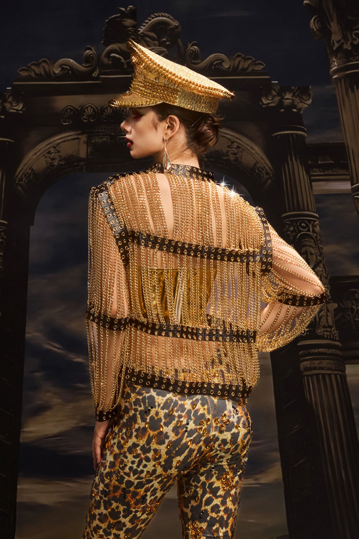 Maximiliano Embellished Chain Jacket-Edgy Glam Statement