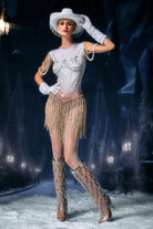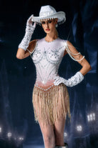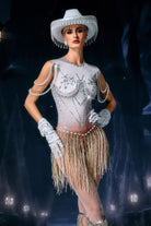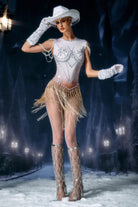 Brynja Sleeveless Fringe Beaded Bodysuit-Crystal Motion, Spotlight Elegance