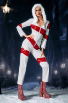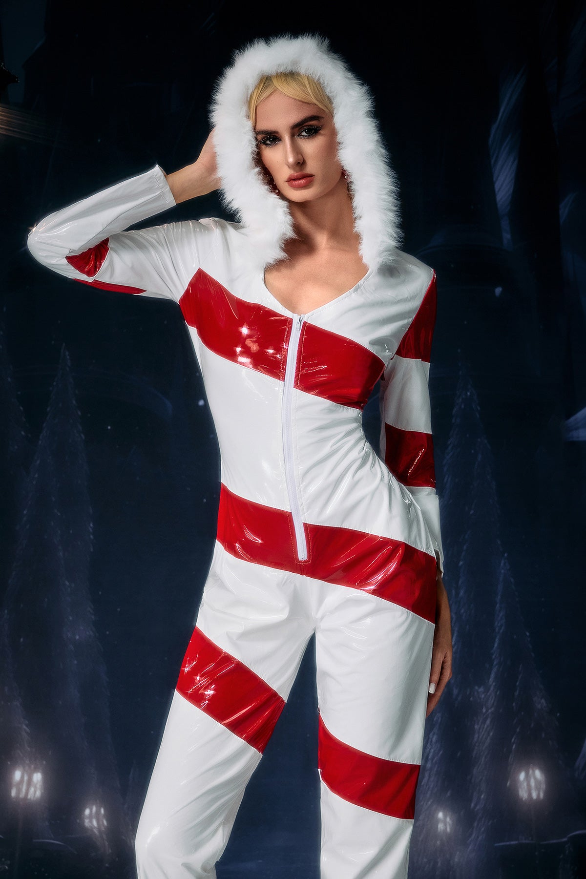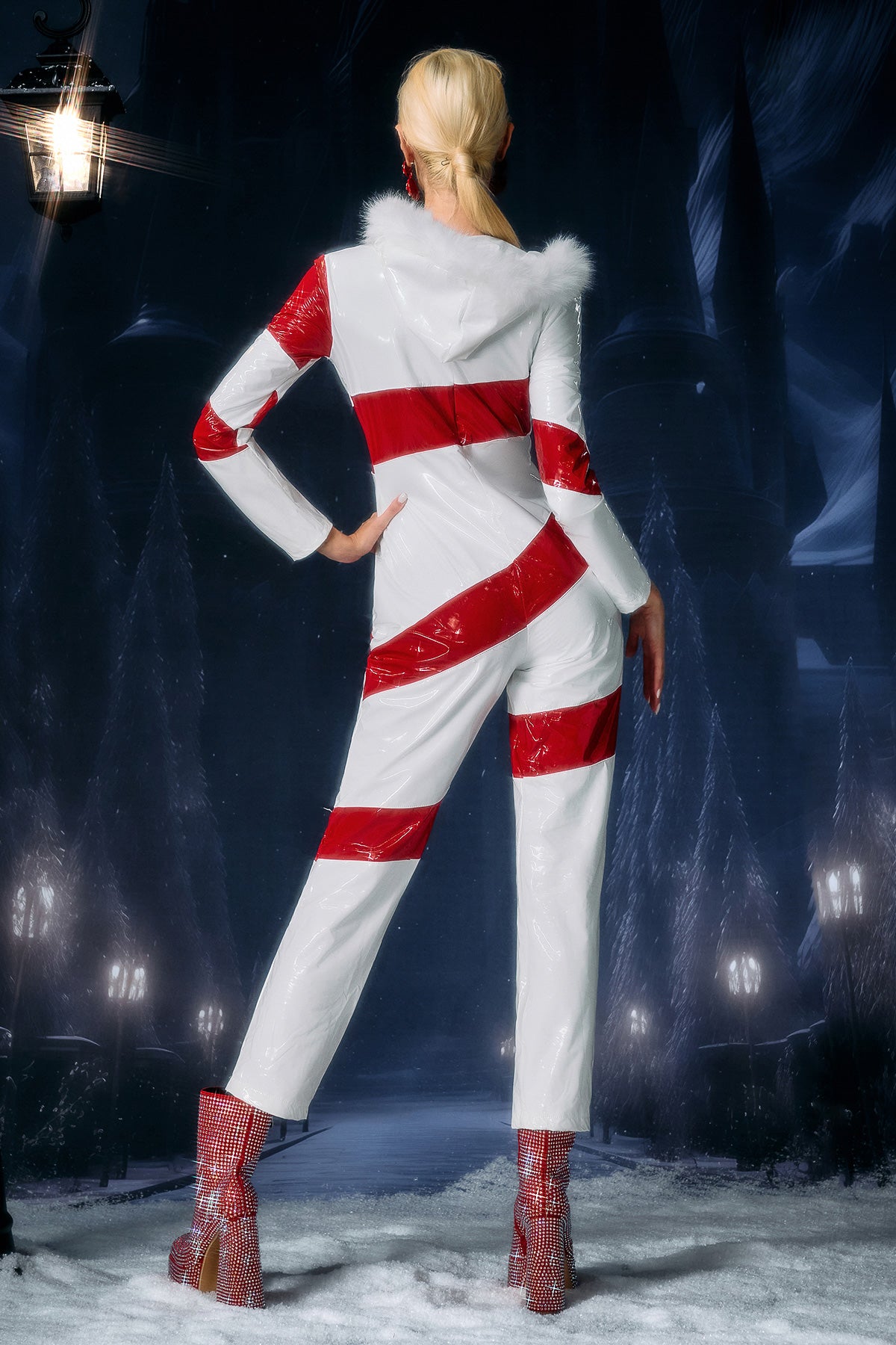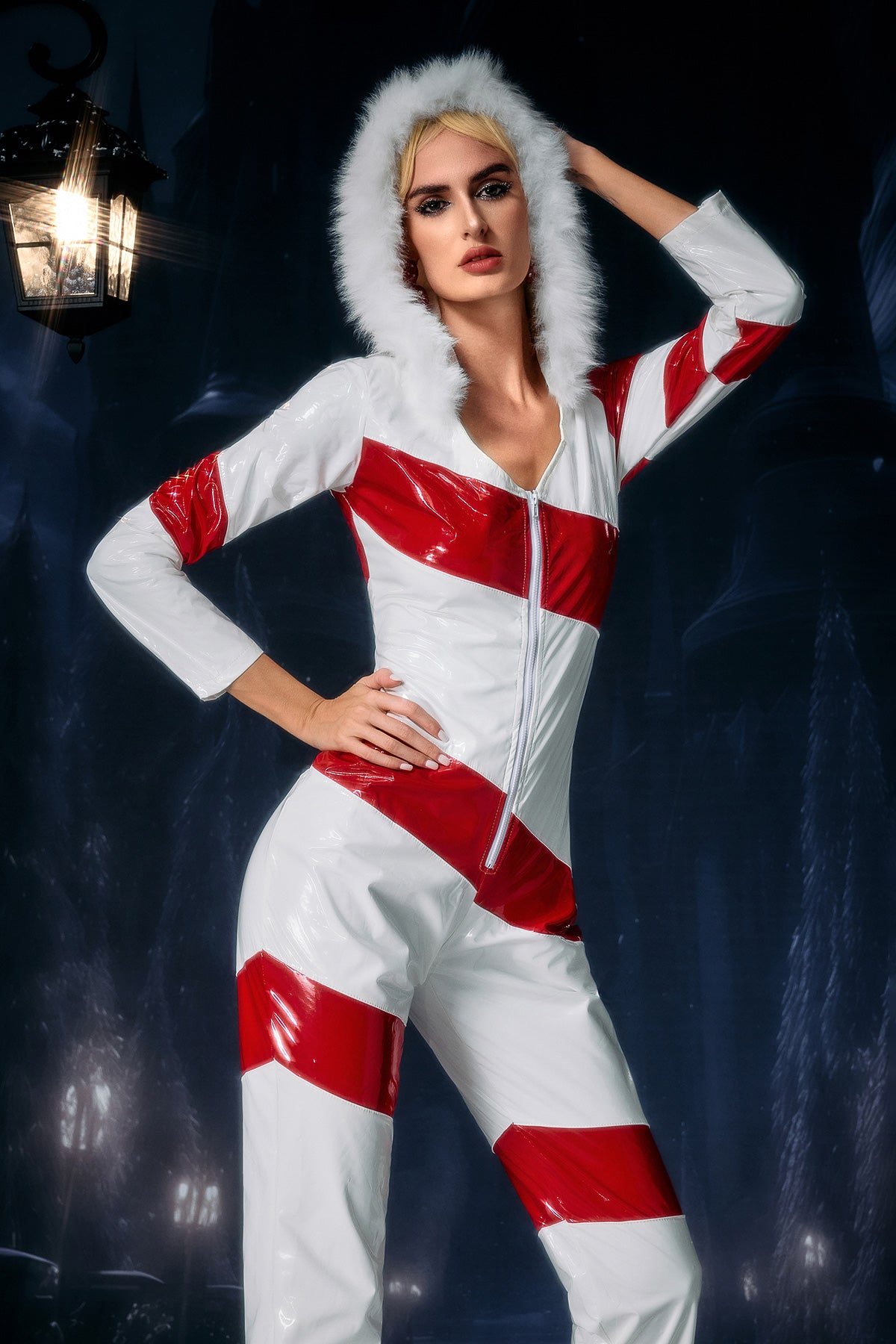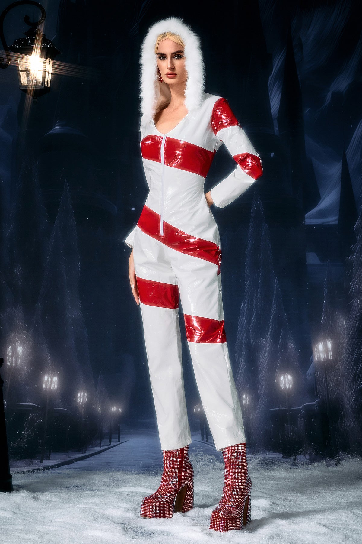 - Full-Body Performance Jumpsuit: Long-sleeve, hooded silhouette forms a unified, high-clarity stage profile