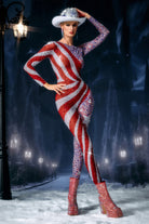 The Dyrna Long Sleeve Star Rhinestone Jumpsuit delivers a luminous, full-body stage silhouette designed around star-shaped crystal accents that elevate motion with crisp, celestial sparkle. Its long-sleeve construction builds clean extended lines through the arms and torso, while the star rhinestones trace the body with sharp reflective points that illuminate every gesture, turn, and pose. The fitted contour supports clarity under strong lighting, ensuring the performer’s shape remains defined from both near-stage views and far-distance sightlines. Each star detail activates under movement, creating a constellation-like glimmer that enhances choreography without overwhelming the overall silhouette. Built for concerts, dance performances, and high-intensity stage environments, the suit offers a modern, radiant, and unmistakably performance-ready identity.