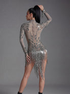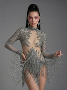 Orvynia Long Sleeve Rhinestone Fringe Bodysuit