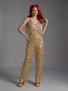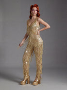Styrna Spaghetti Crystal Fringe Jumpsuit-Liquid Sparkle, Kinetic Precision