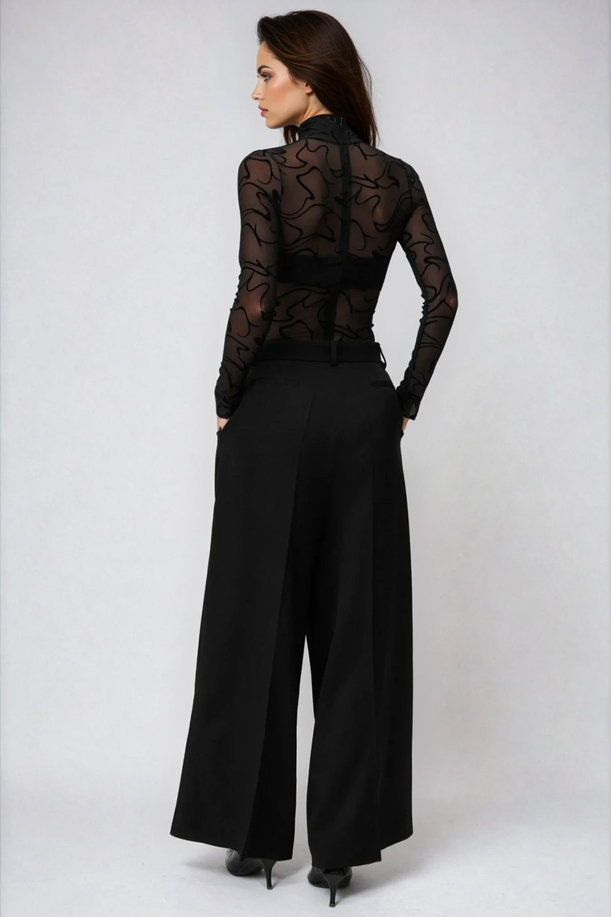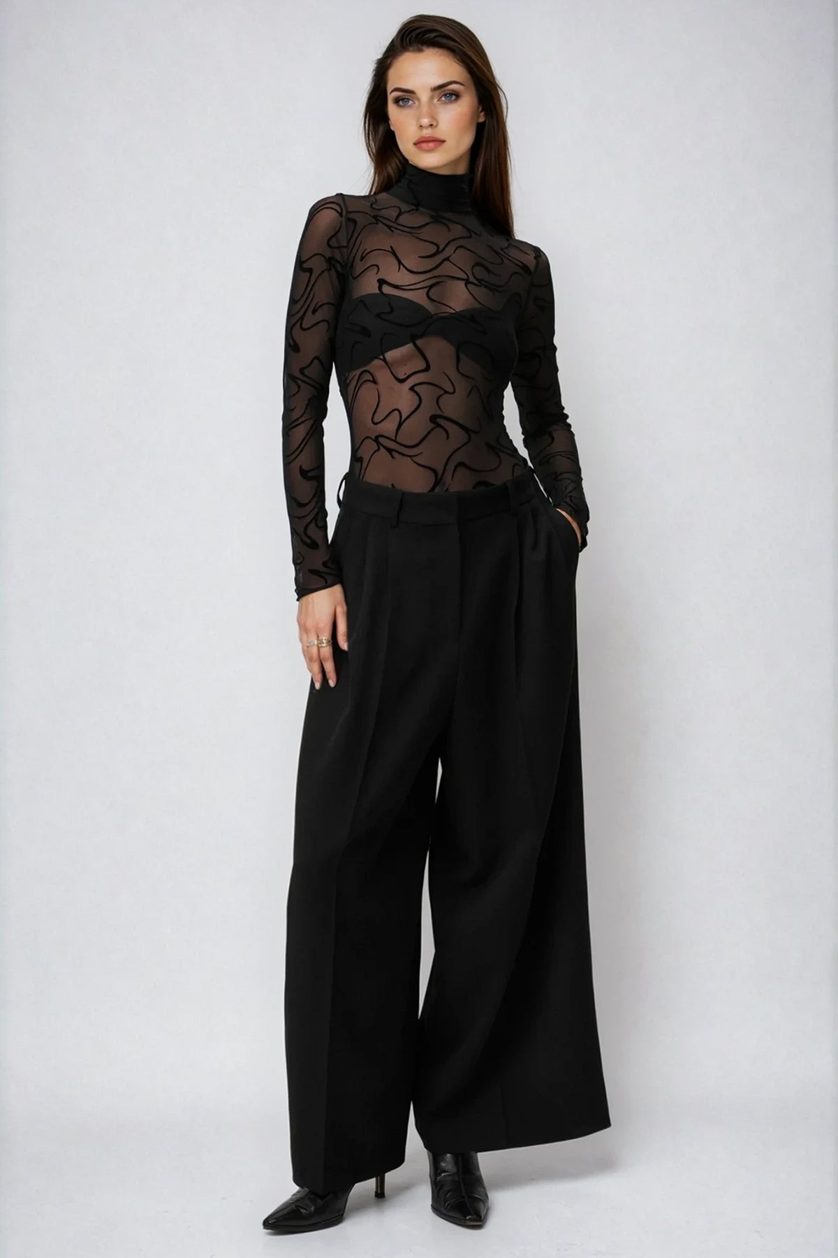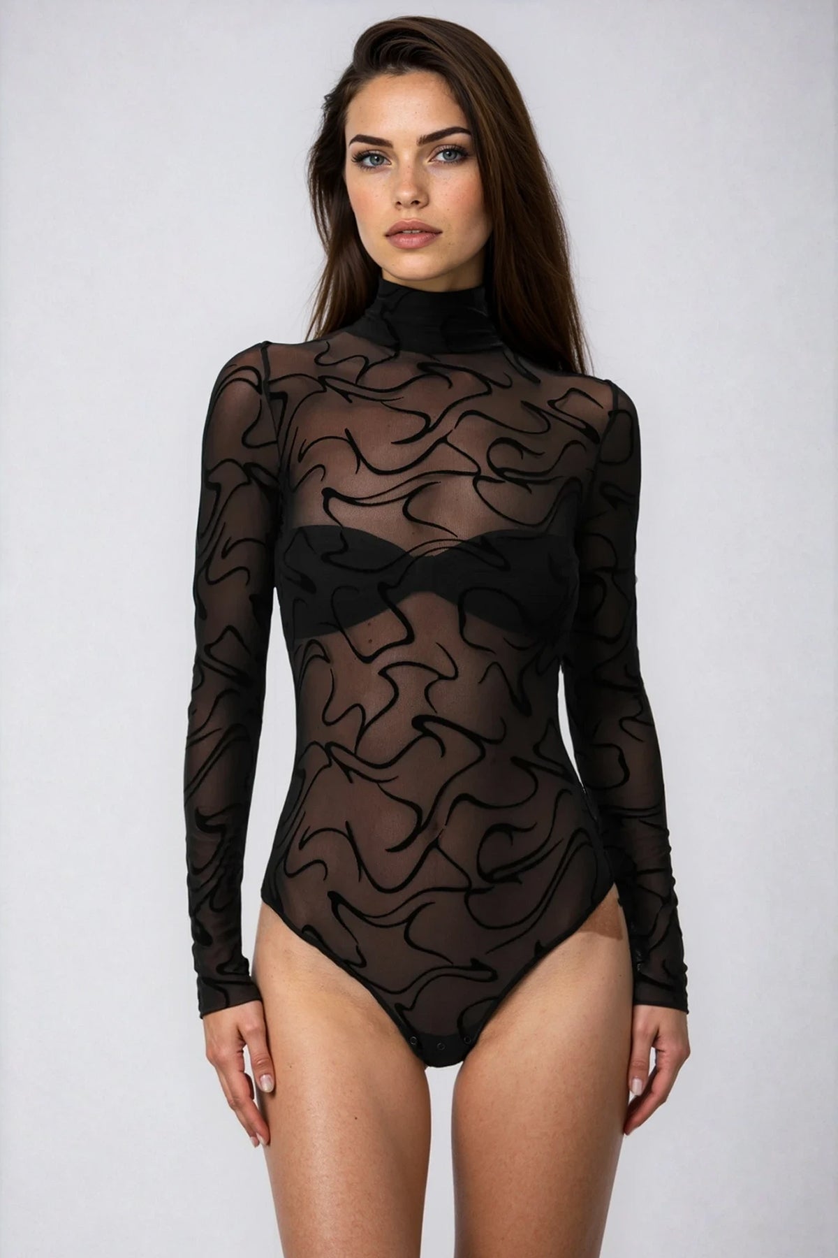 Dylra Long Sleeve Mesh Printed Bodysuit