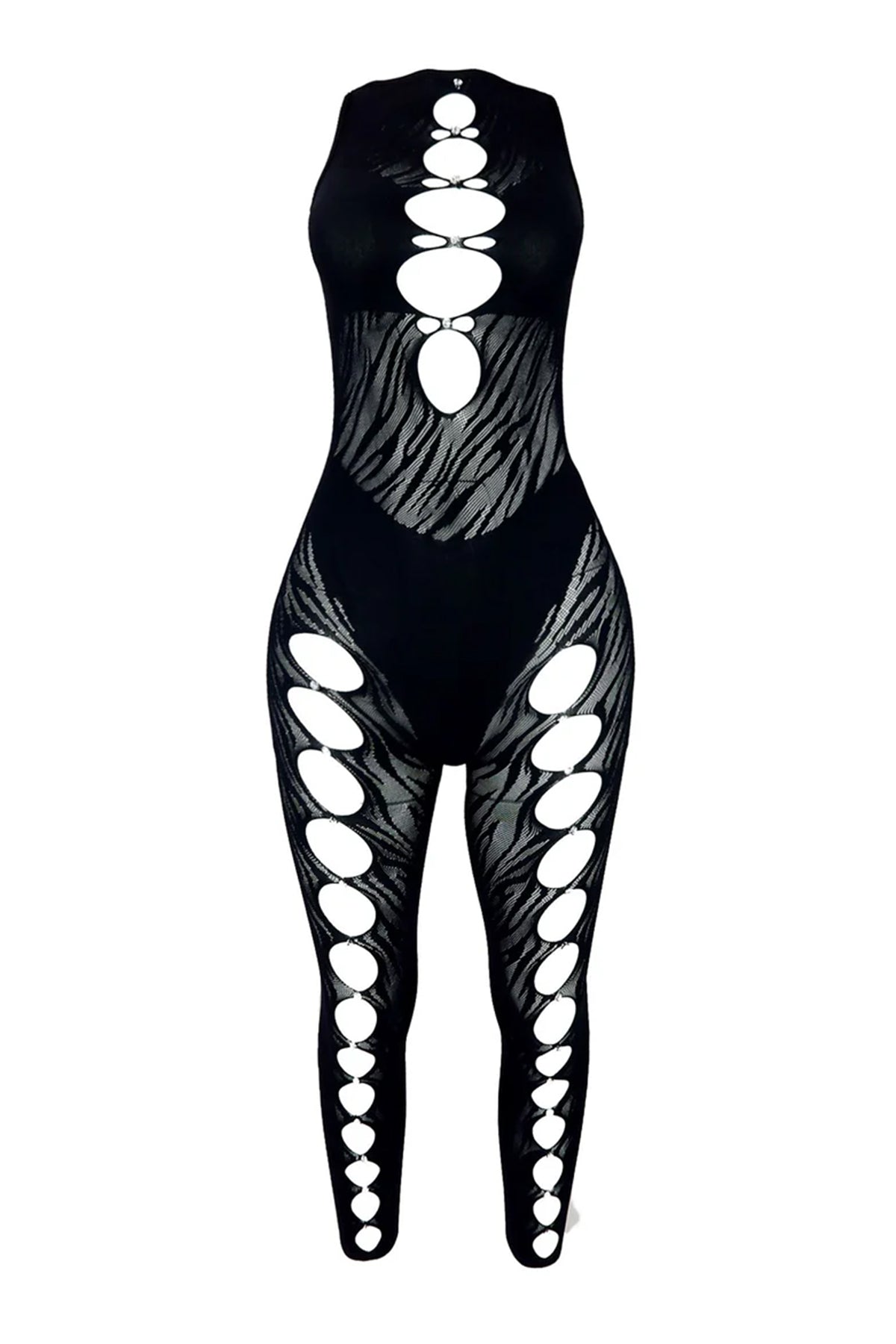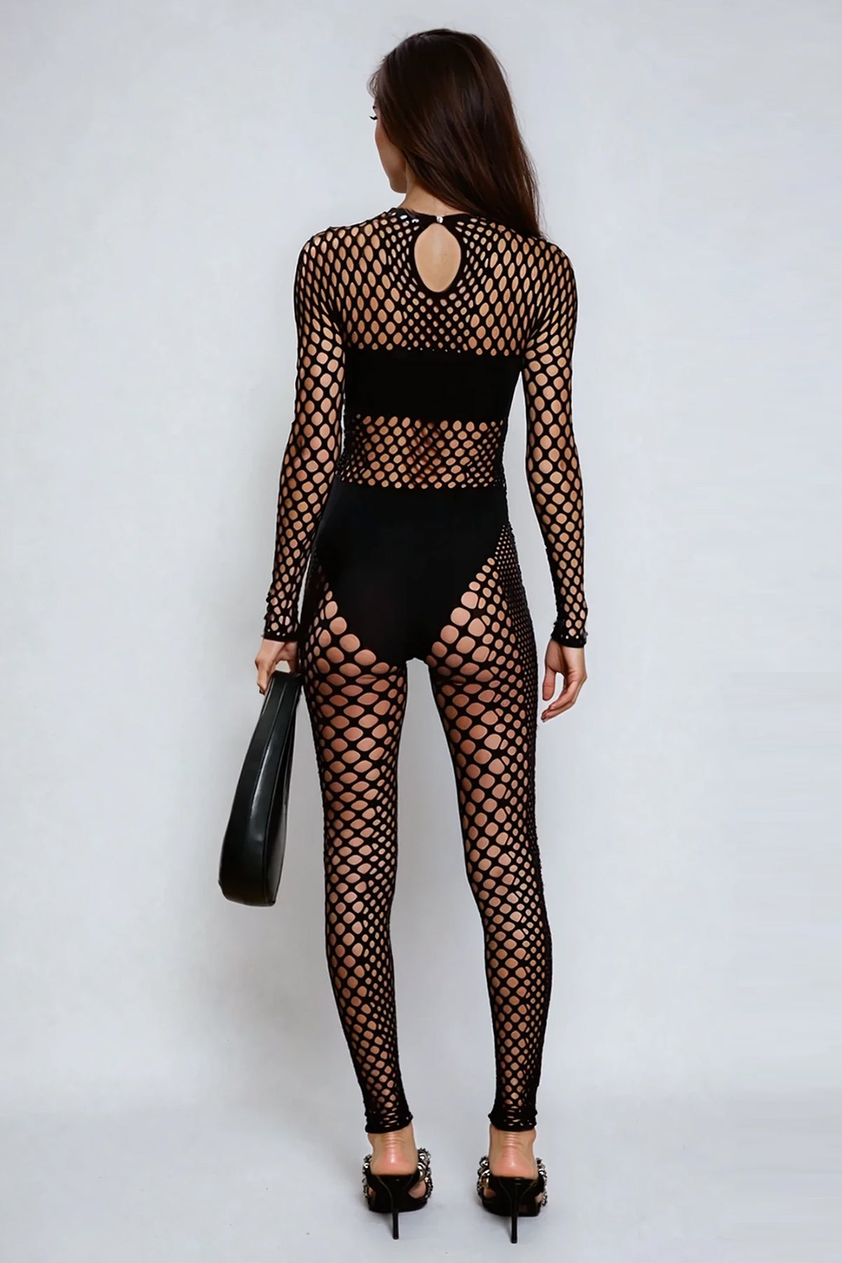 Eslavia Fishnet Cutout Long Sleeve Jumpsuit