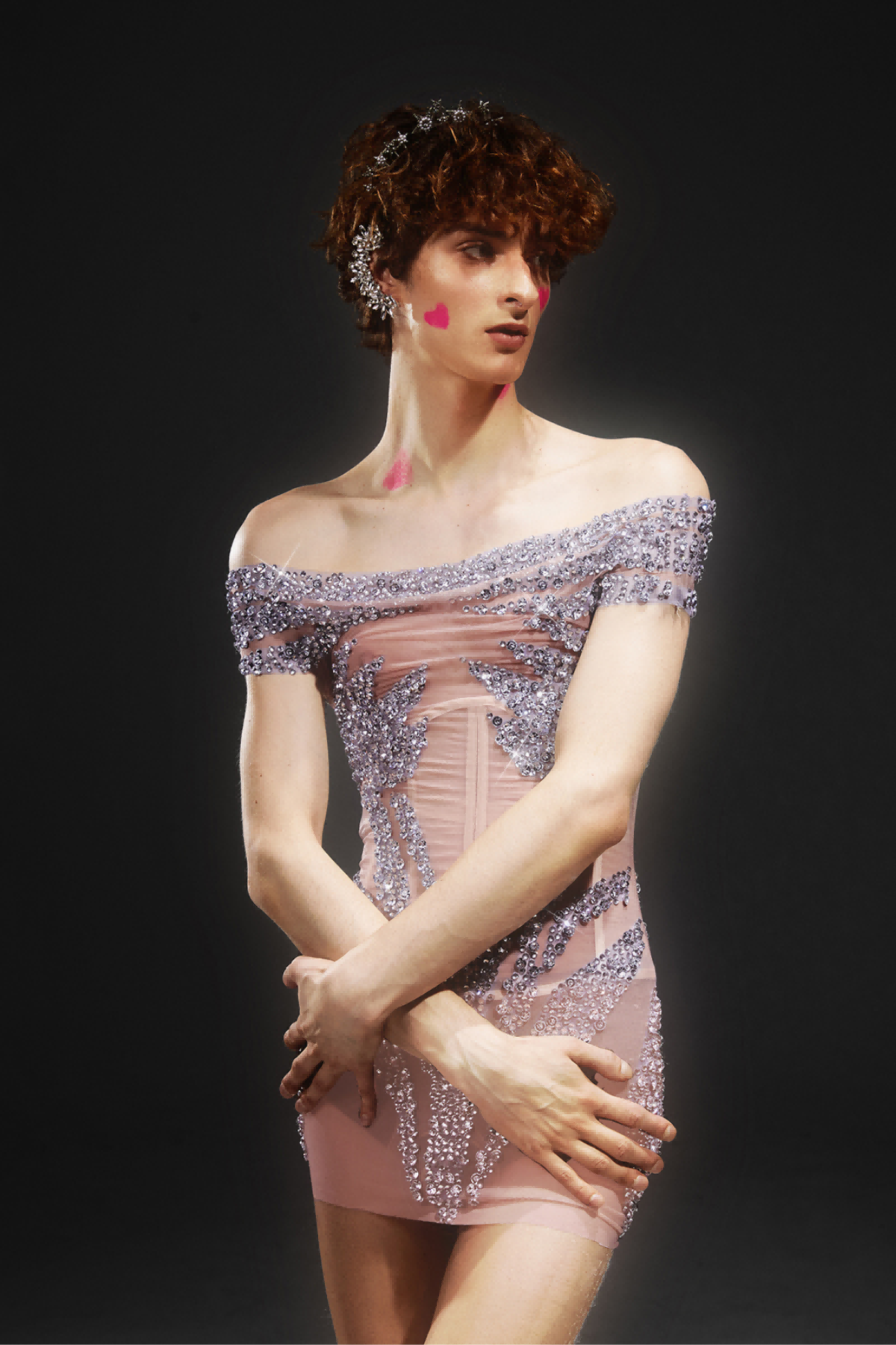A bold blend of elegance and avant-garde, the Adley Off Shoulder Rhinestone Mesh Dress is made for show-stopping performers and will make you stand out. This sheer mesh dress features a flattering off-the-shoulder neckline and is embellished with sparkling rhinestones to capture every ray of light. The curve-hugging silhouette and sheer fabric create a sexy and sophisticated vibe, ideal for drag shows, stage performances, high-fashion shoots or unforgettable club nights.