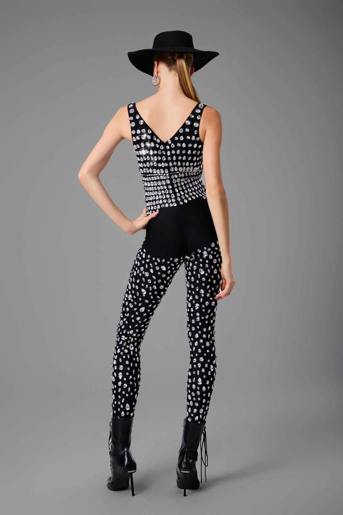 Christian Mesh Crystal Embellished Jumpsuit-Luminous Precision in Dark Elegance