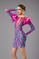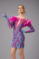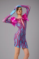 RemiAurelia Mesh Feather Rhinestone Dress-Ethereal Sparkle in Feather-Touched Elegance