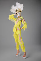 The Rhodes Long Sleeve Fringe Printed Jumpsuit seamlessly blends vibrant colors with a bold design to create a striking piece. Featuring a striking print and dynamic fringe details, this jumpsuit adds a touch of energy and movement to any occasion. The long sleeves create a stylish, flattering fit while maintaining a relaxed style. Perfect for performances, parties, or fashion-forward events, this jumpsuit is guaranteed to make you stand out confidently and stylishly.