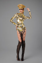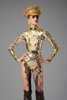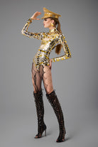 The Thomas Long Sleeve Embellished Mirror Bodysuit exudes luxury and attention. This bodysuit features delicate rhinestone embellishments for a mirror-like sheen and a rich golden sheen, creating a luxurious allure. The long sleeves and fitted silhouette create a sleek and flattering silhouette, perfect for performances, high-end events, or a night out—you're sure to be the center of attention. Dazzle and make a statement in this dazzling gold bodysuit.