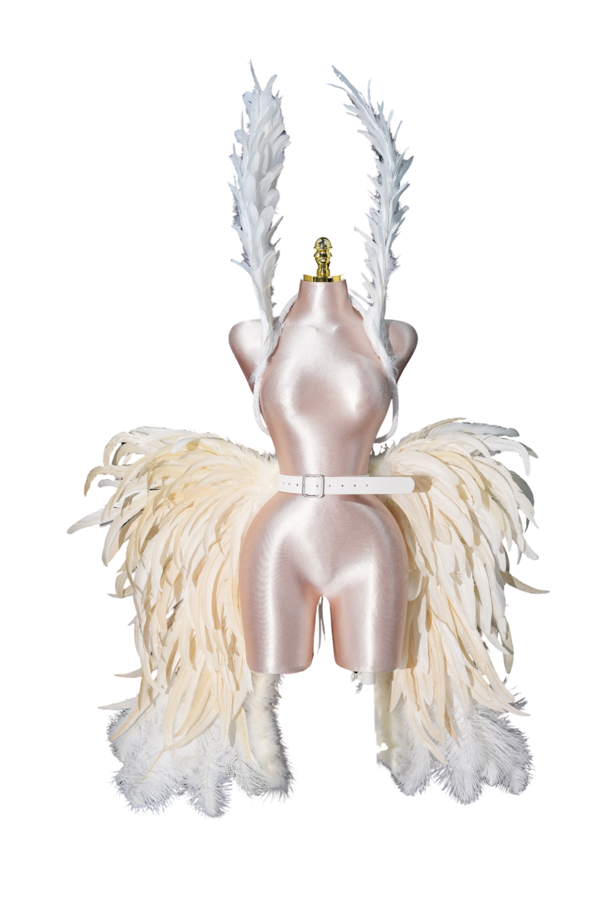 - Note: Includes oversized feather wings and two dramatic neck feathers, bodysuit not included